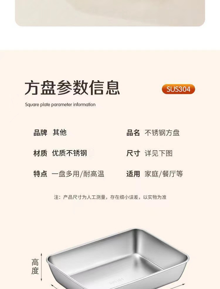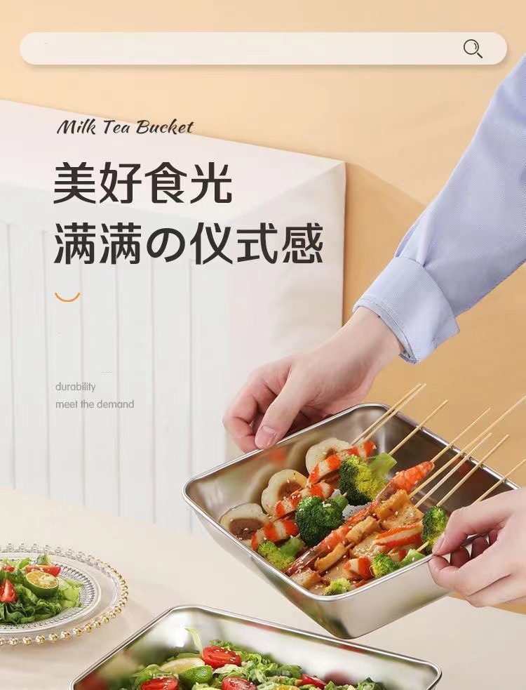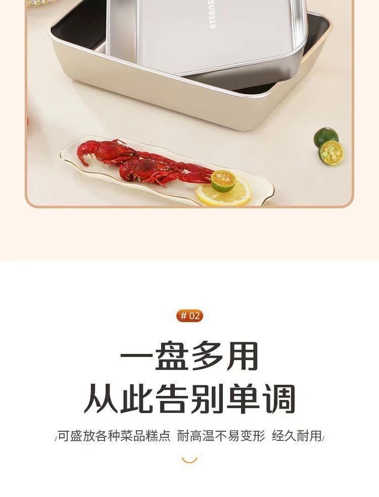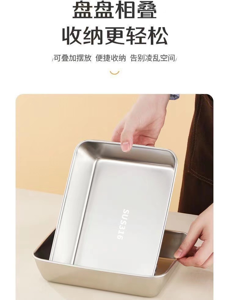 304毛巾盘不锈钢方盘托盘烧烤盘家用长方形菜盘平底凉拌微波炉