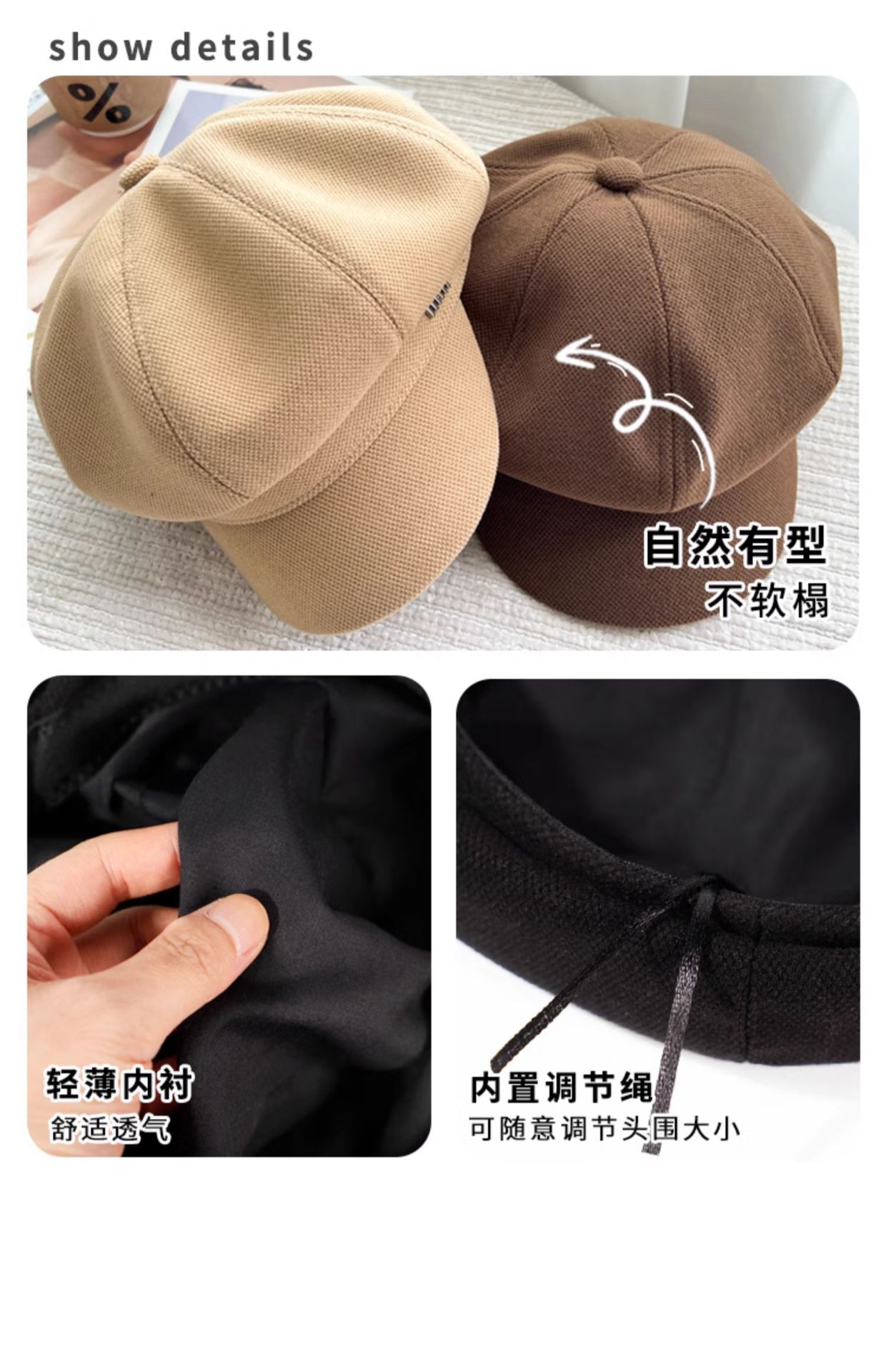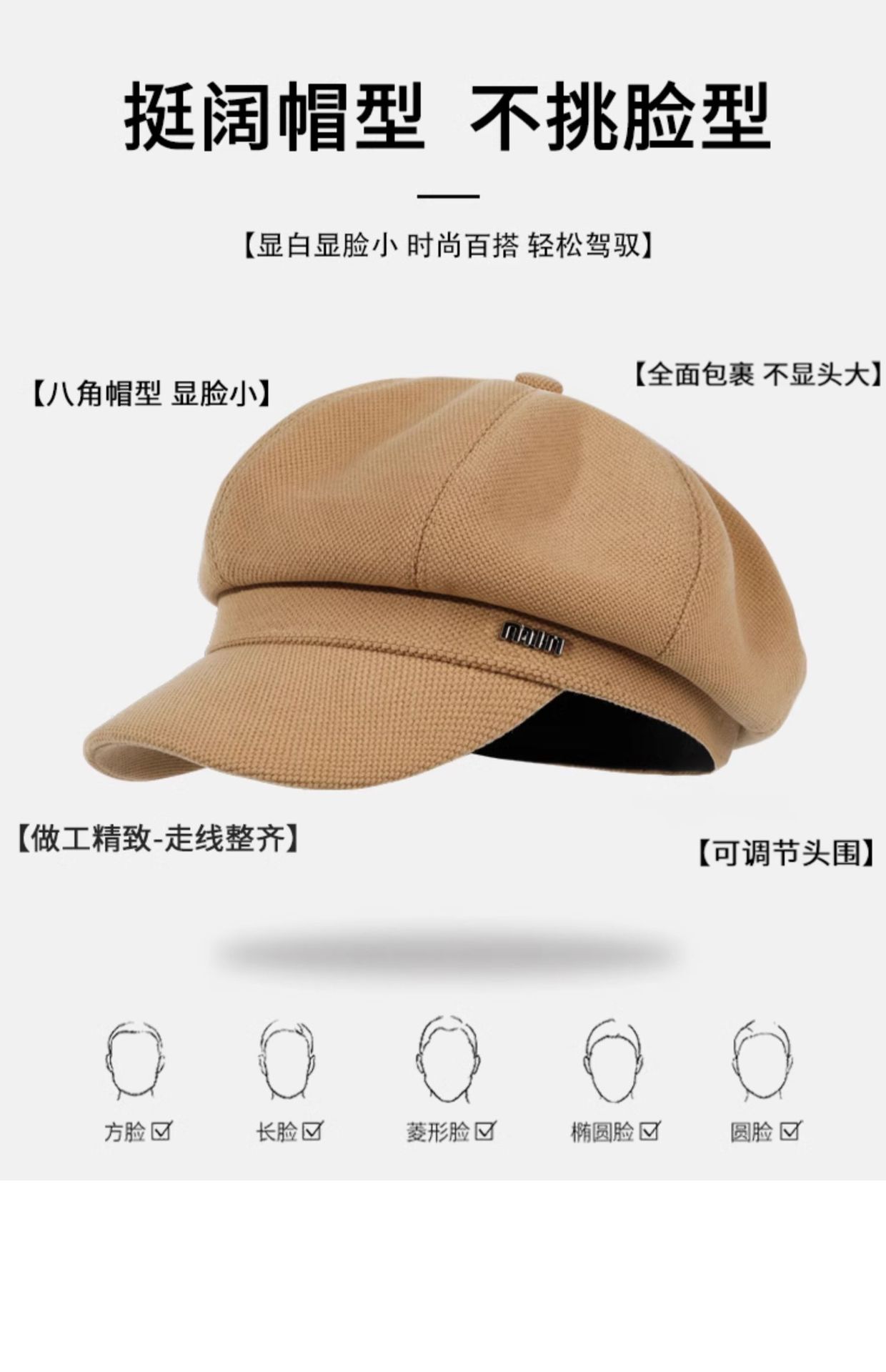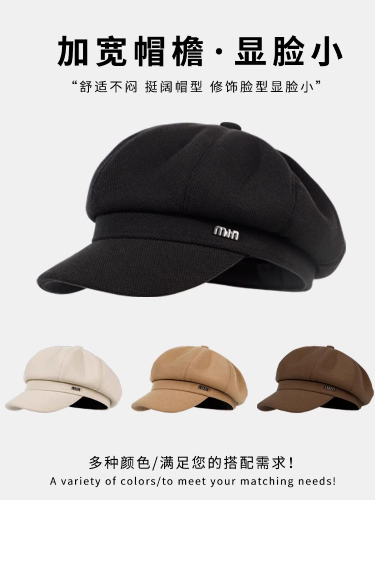颜色 M八角帽-黑,M八角帽-米,M八角帽-卡,M八角帽-咖