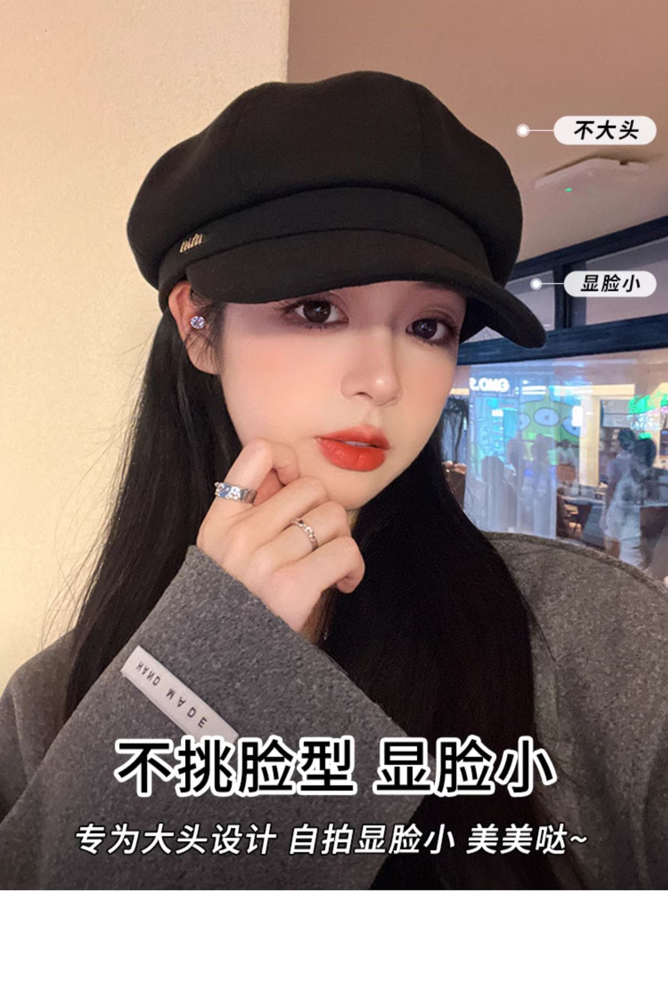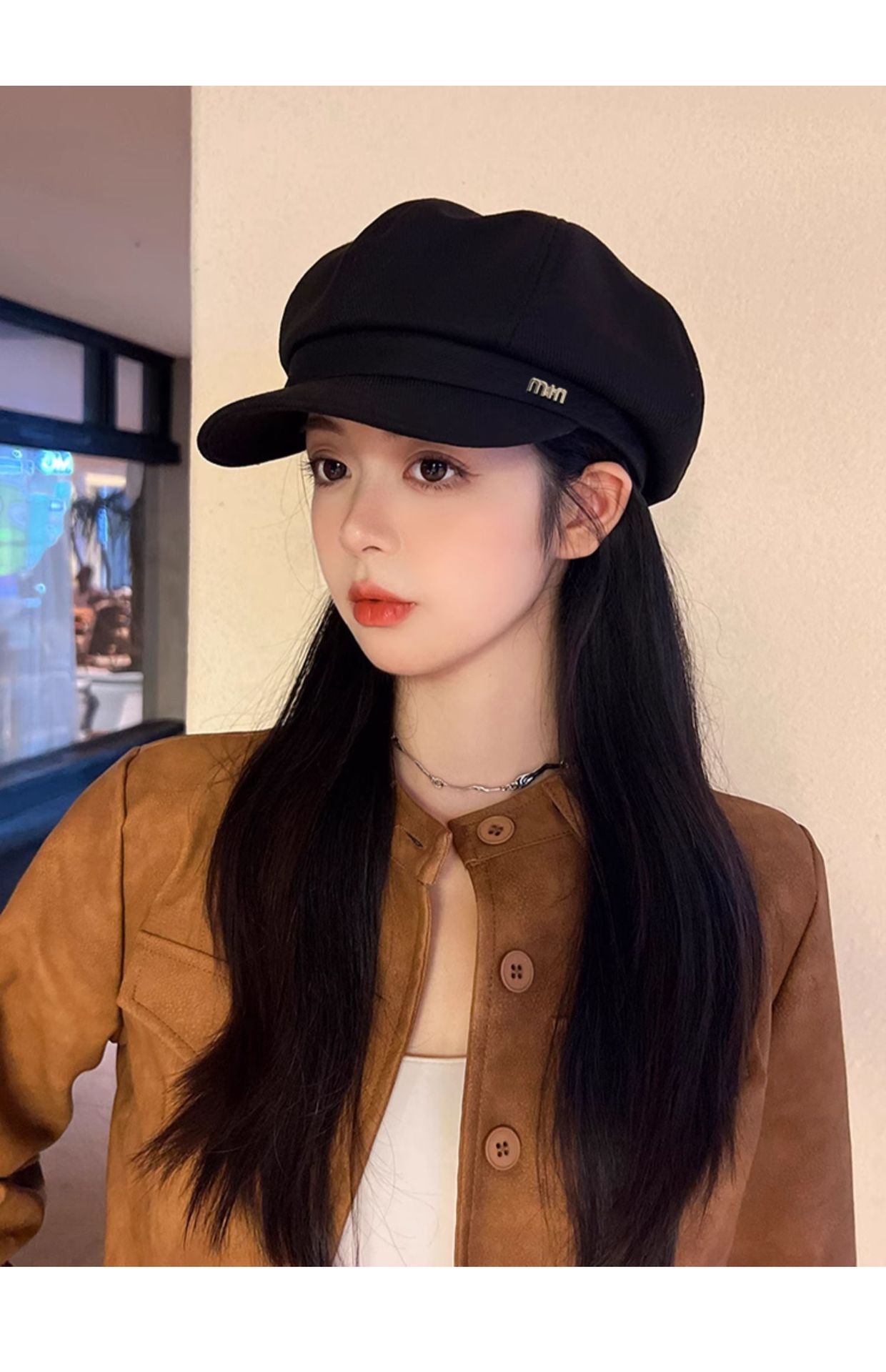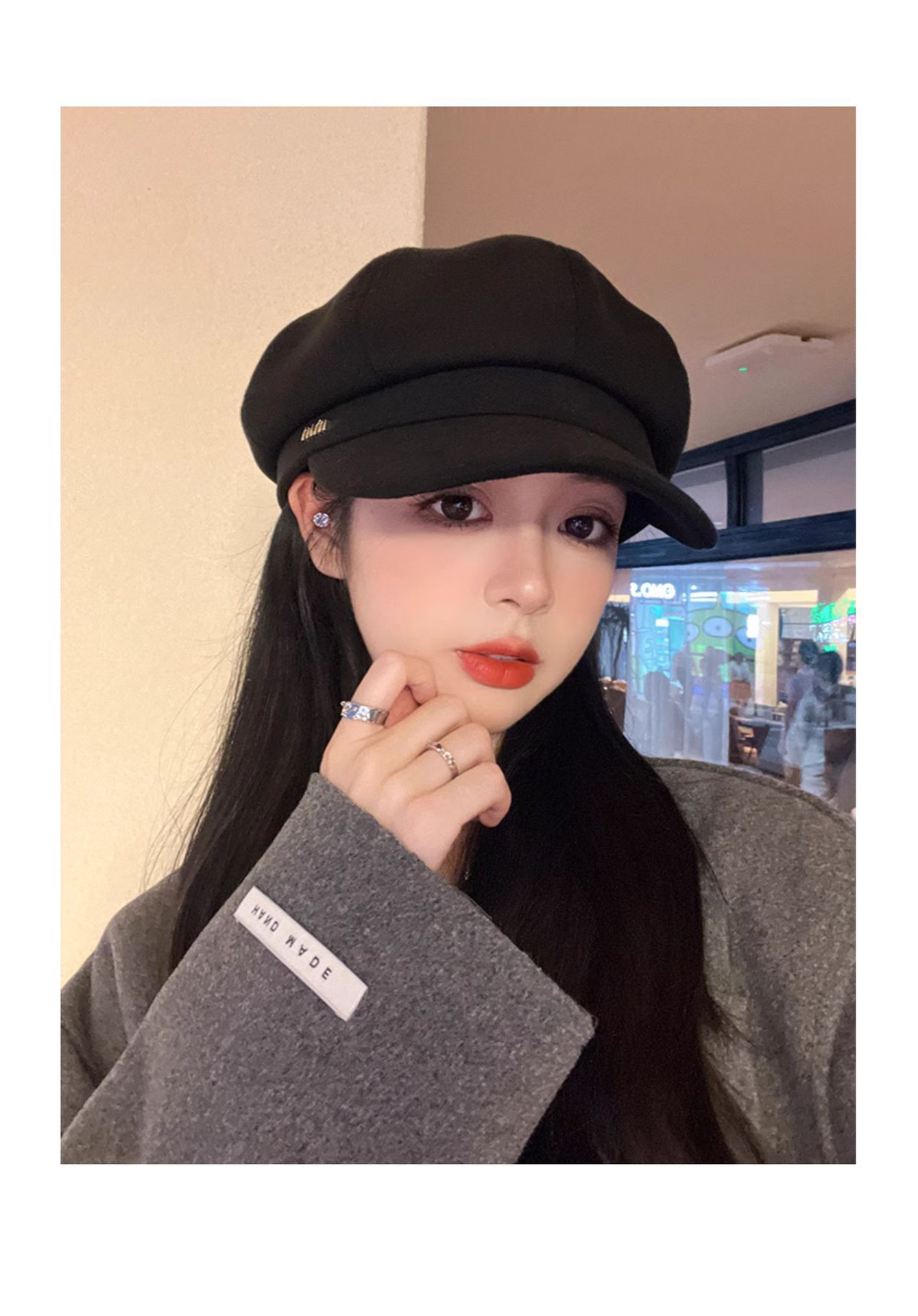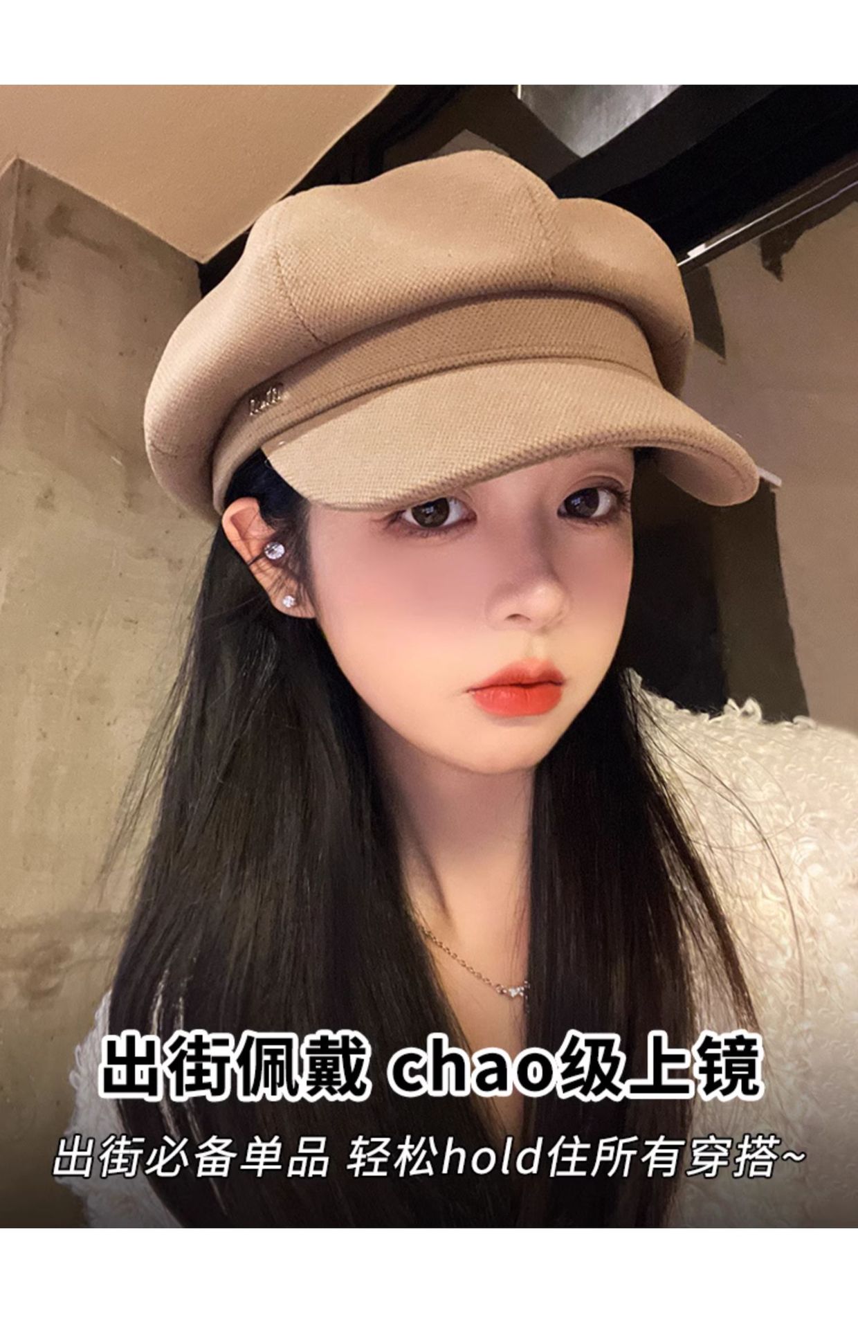 新款秋冬季毛呢八角帽女高级感皮质帽檐百搭显脸小英伦复古报童帽