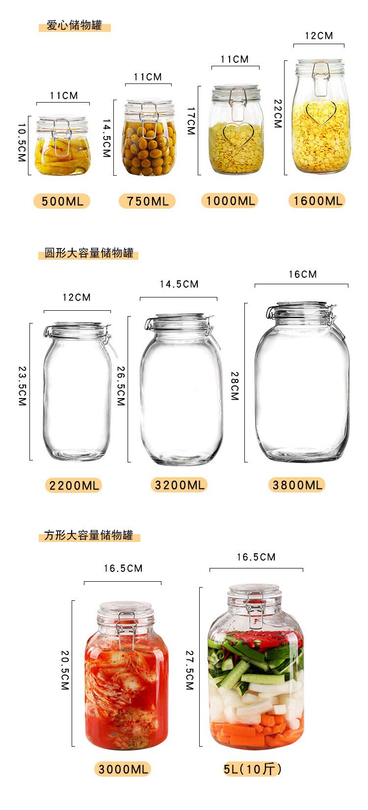 【代発】密封ガラス瓶台所収納食品押圧式貯蔵タンク雑穀茶葉漬けキムチ壇