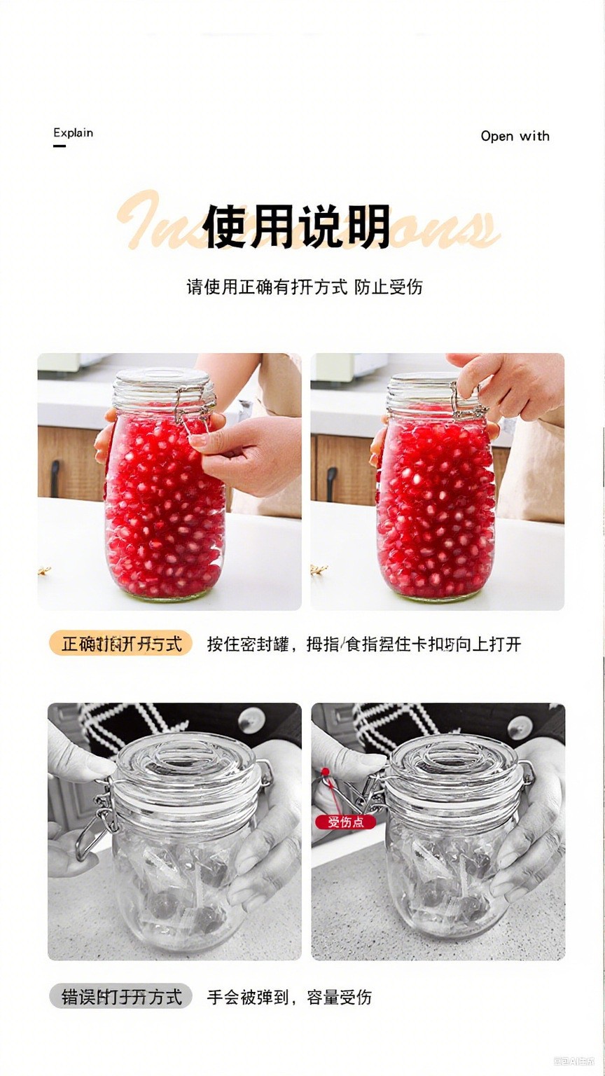 【代発】プッシュ式密封缶ガラス食品蜂蜜レモン瓶蓋付き家庭用クリップ収納瓶