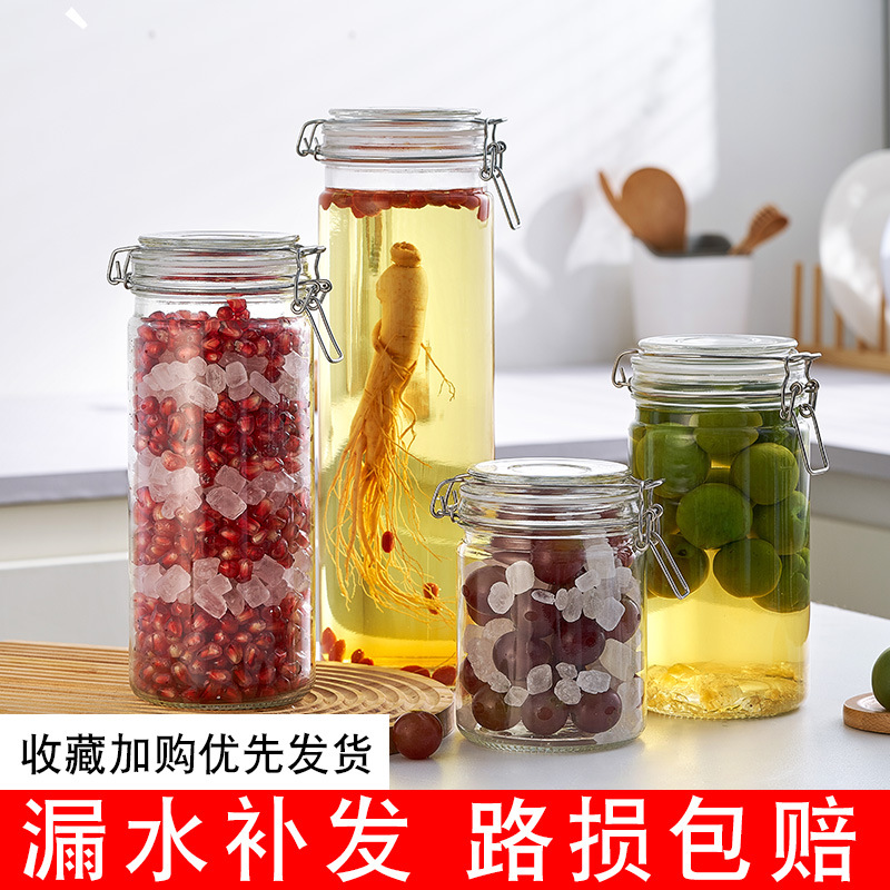卸売ガラス保存瓶キッチン穀物食品保存バックル茶瓶密封瓶ガラス瓶
