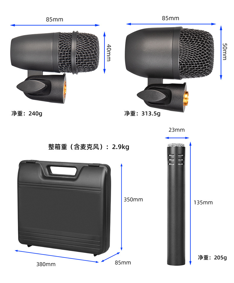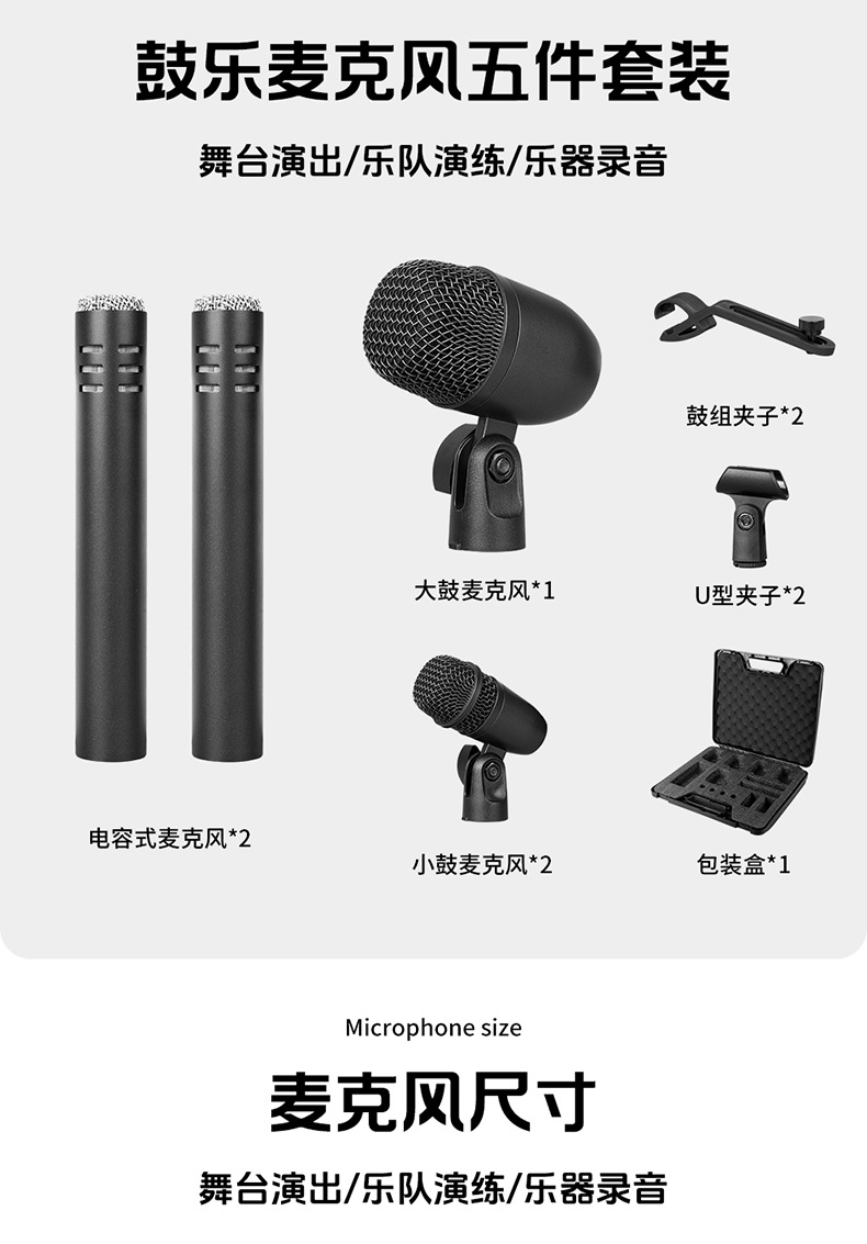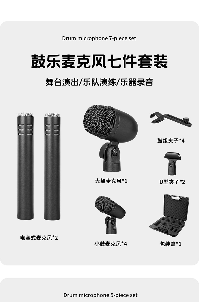 颜色 高清乐器拾音麦克风(7件套塑箱款),高清乐器拾音麦克风(5件套塑箱款),大鼓麦克风(单支),小鼓麦克风(单支),擦片麦克风(单支),高清乐器拾音麦克风(7件套彩盒款),高清乐器拾音麦克风(5件套彩盒款)