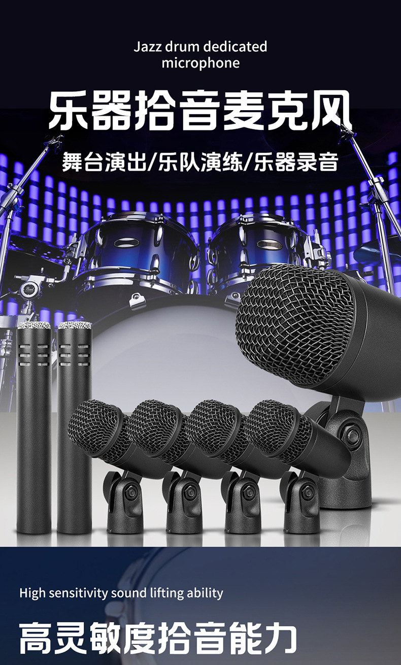 乐器拾音麦克风鼓乐架子鼓话筒套装专业舞台演出爵士鼓乐器拾音麦