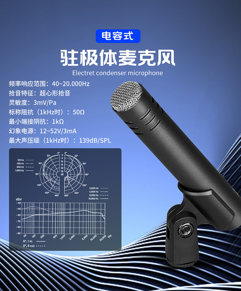 跨境货源C02笔形麦克风电容乐器拾音演合唱吉他录音小振膜话筒