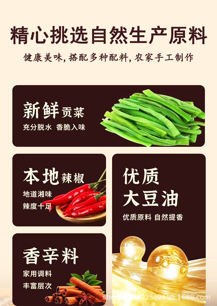 原料 贡菜、水、食用盐、植物油、味精、香料等