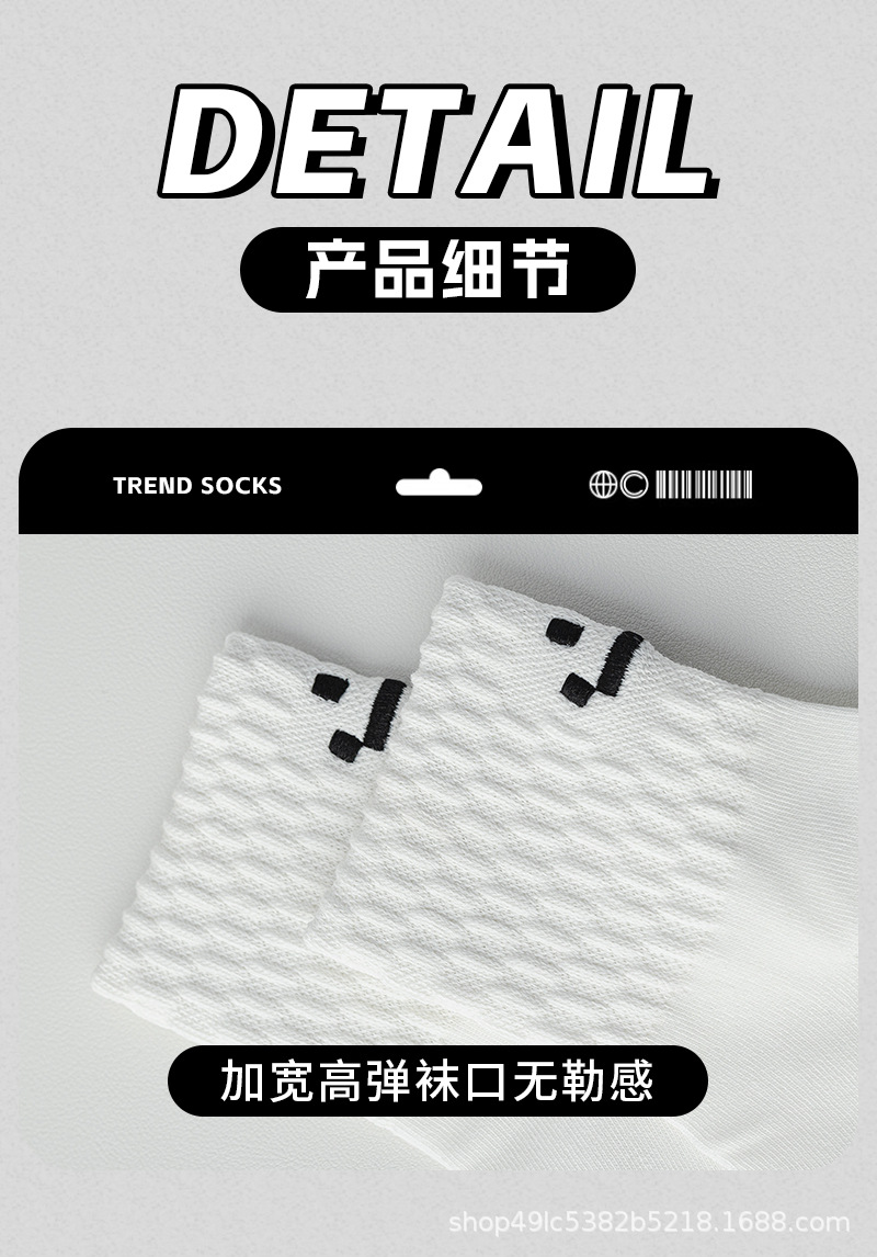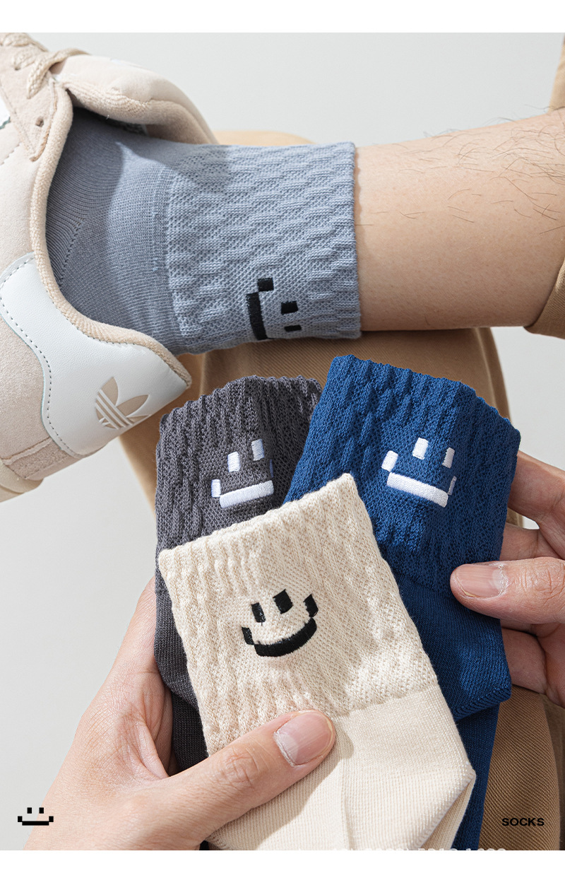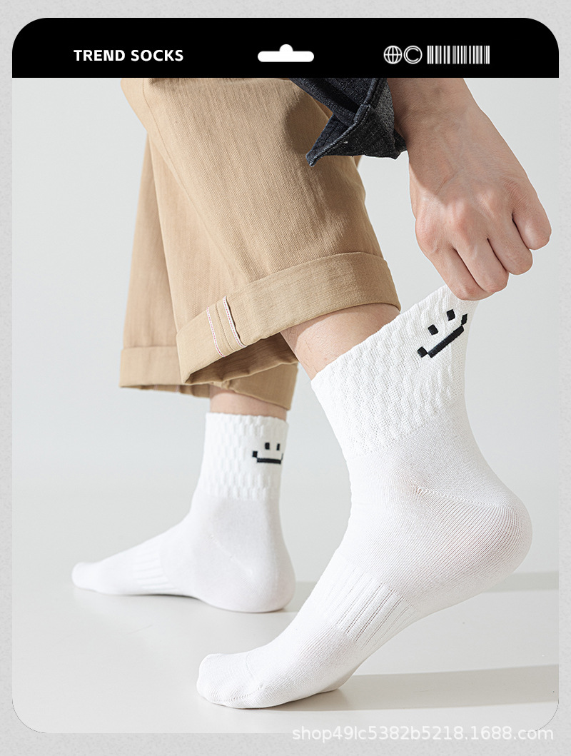 新款潮流刺绣秋冬季中筒袜中性风男款防滑防磨笑脸袜简约百搭棉袜