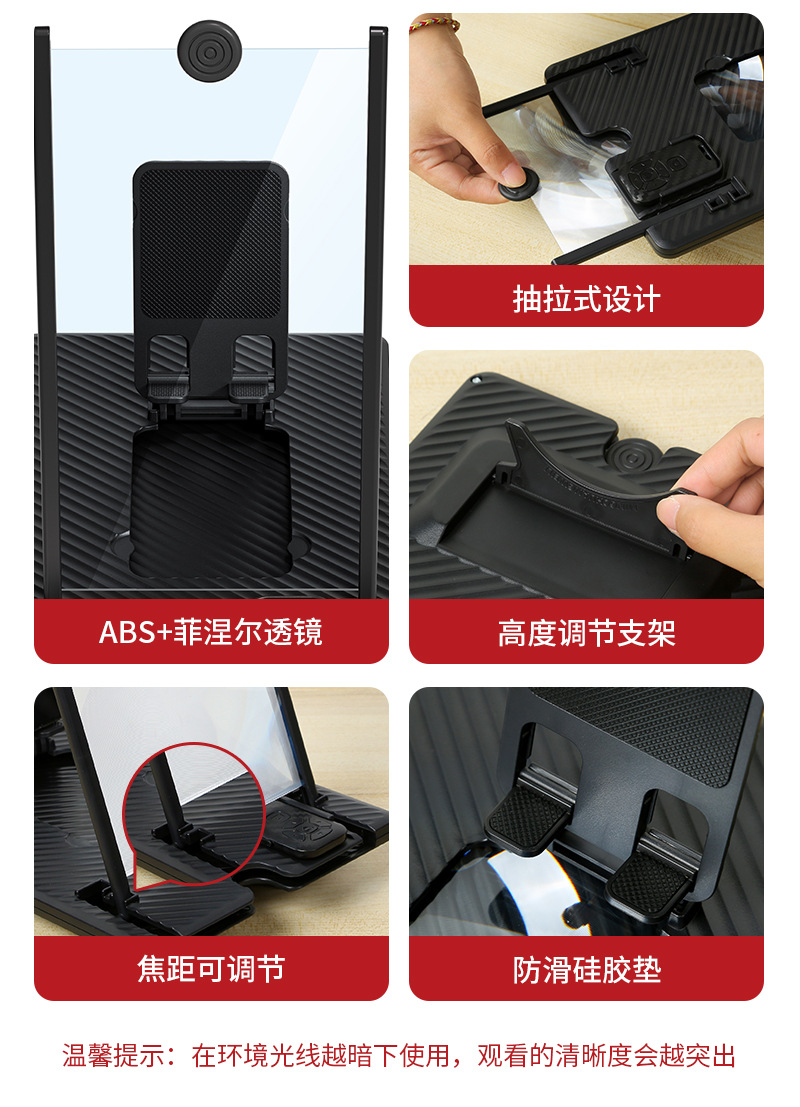 12インチ引き出し横縦スクリーン携帯電話スクリーンアンプ怠け者スタンドhd抗ブルーレイ3d携帯電話スタンド拡大鏡