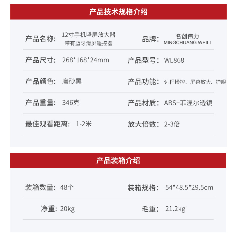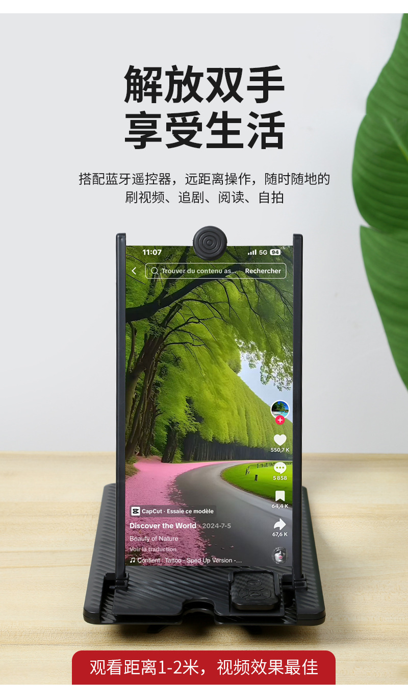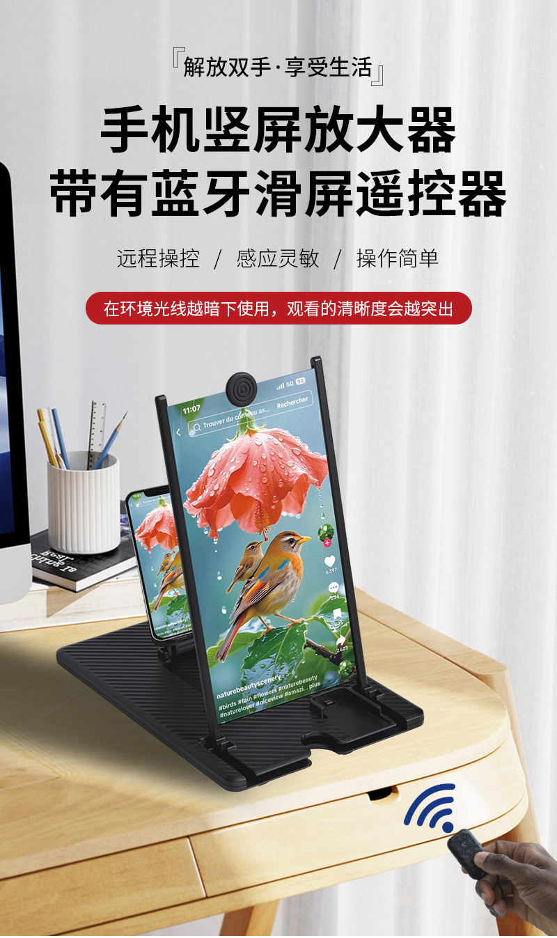 12寸竖屏手机屏幕放大器高清投屏带蓝牙遥控刷抖音懒人手机支架