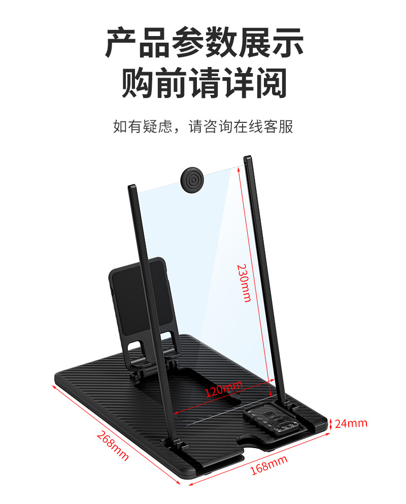 手机屏幕放大器桌面大屏超清投影护眼镜竖屏短视频带遥控懒人支架