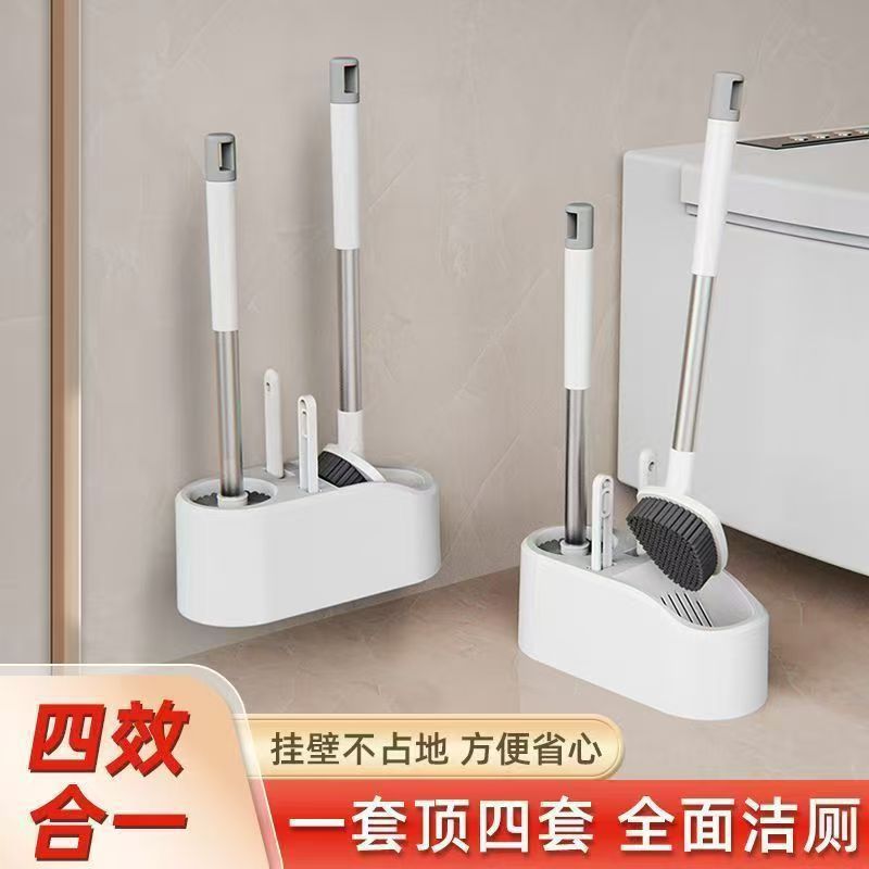四合一新款马桶刷套装带底座家用壁挂长柄清洁刷蹲便器无死角厕所