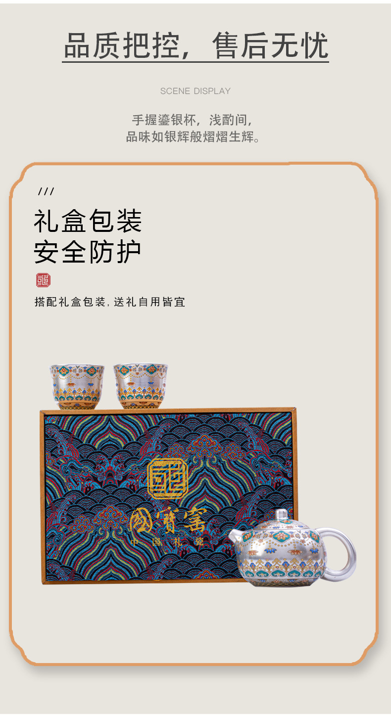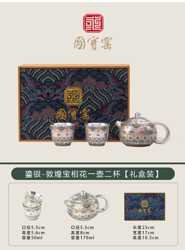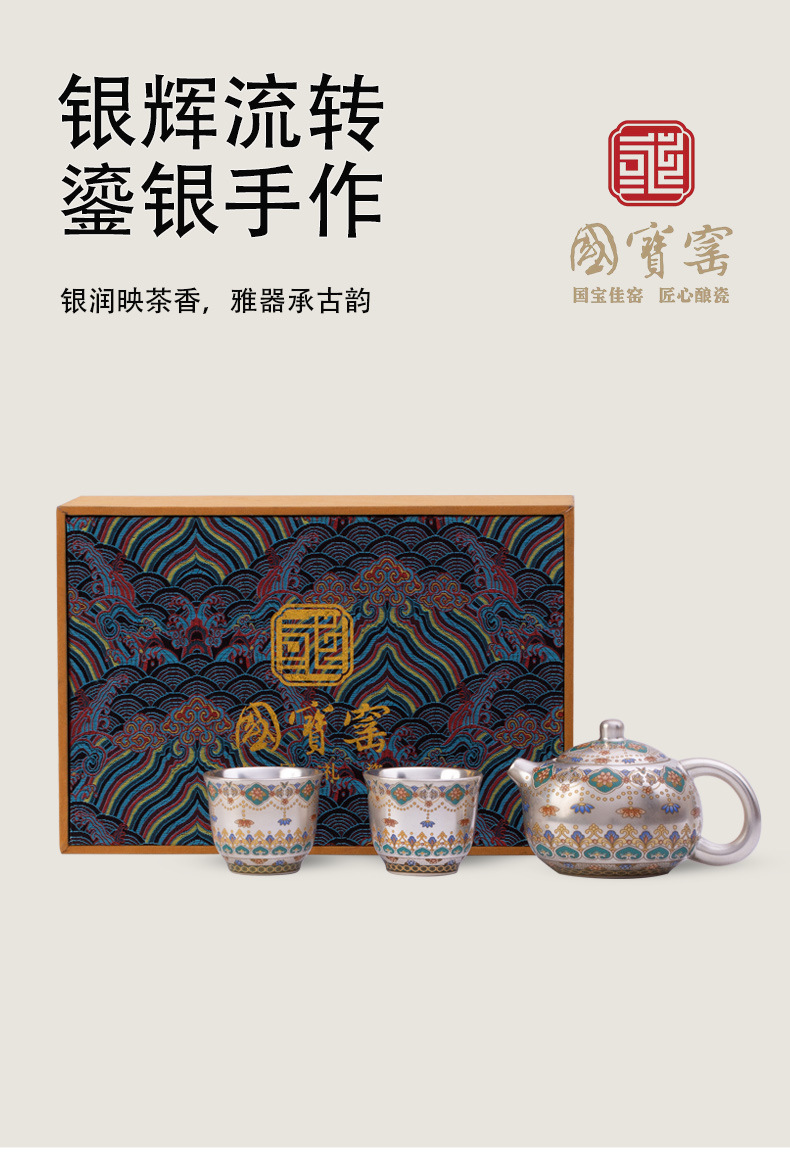 国宝窑一壶二杯鎏银伴手礼家用泡茶壶礼盒装送长辈送领导客户礼物