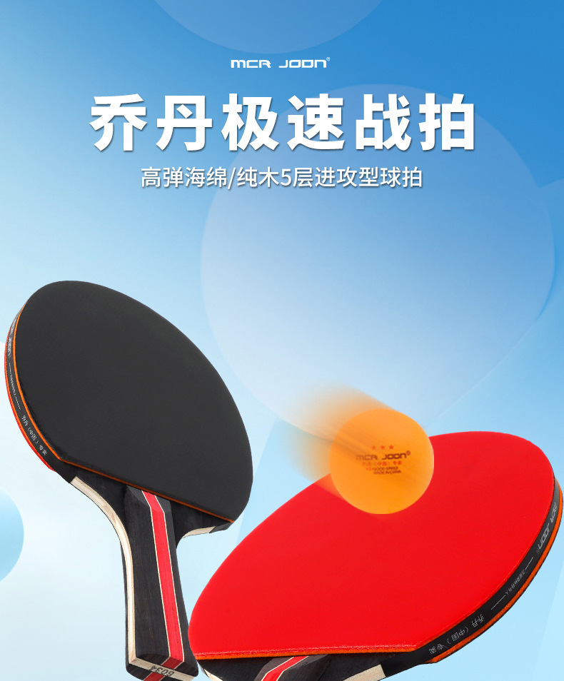 乔丹乒乓球拍双面反胶高弹胶皮横拍长柄学生儿童初学者训练乒乓拍