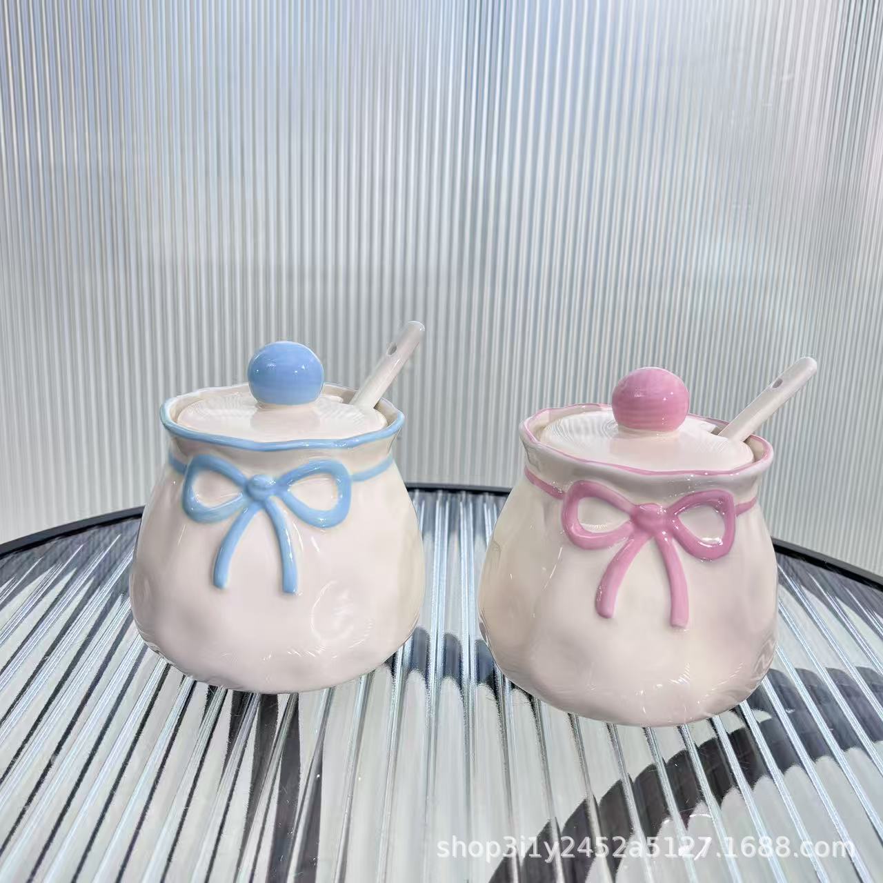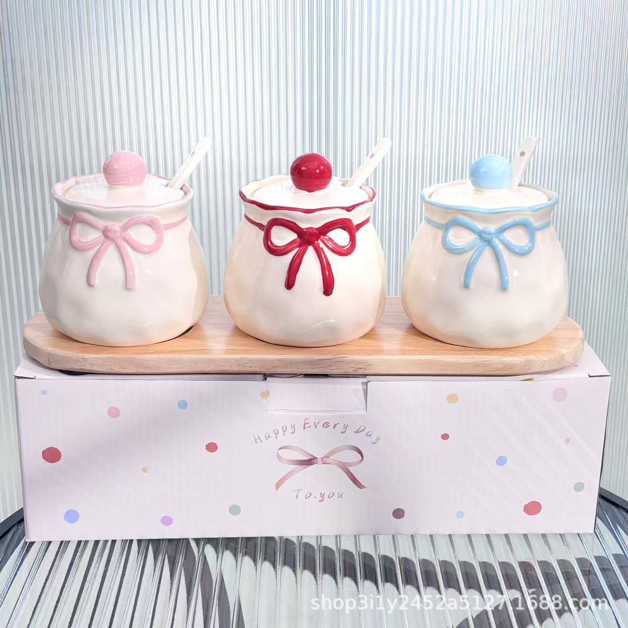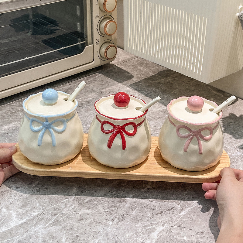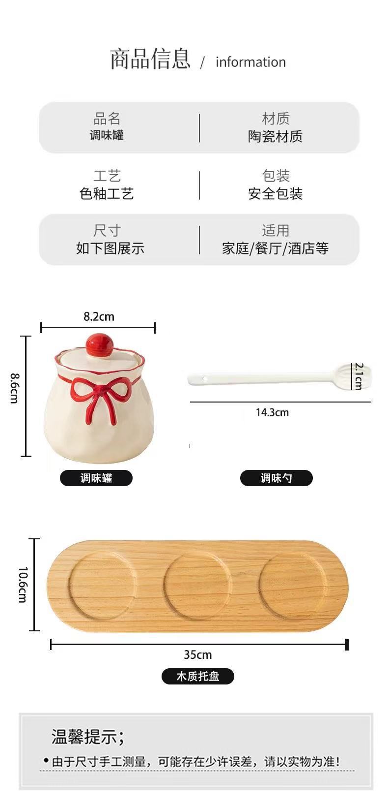 规格 红色蝴蝶结调料罐【带勺子】,粉色蝴蝶结调料罐【带勺子】,蓝色蝴蝶结调料罐【带勺子】,调料罐组合套装【带托盘】(可备注颜色)