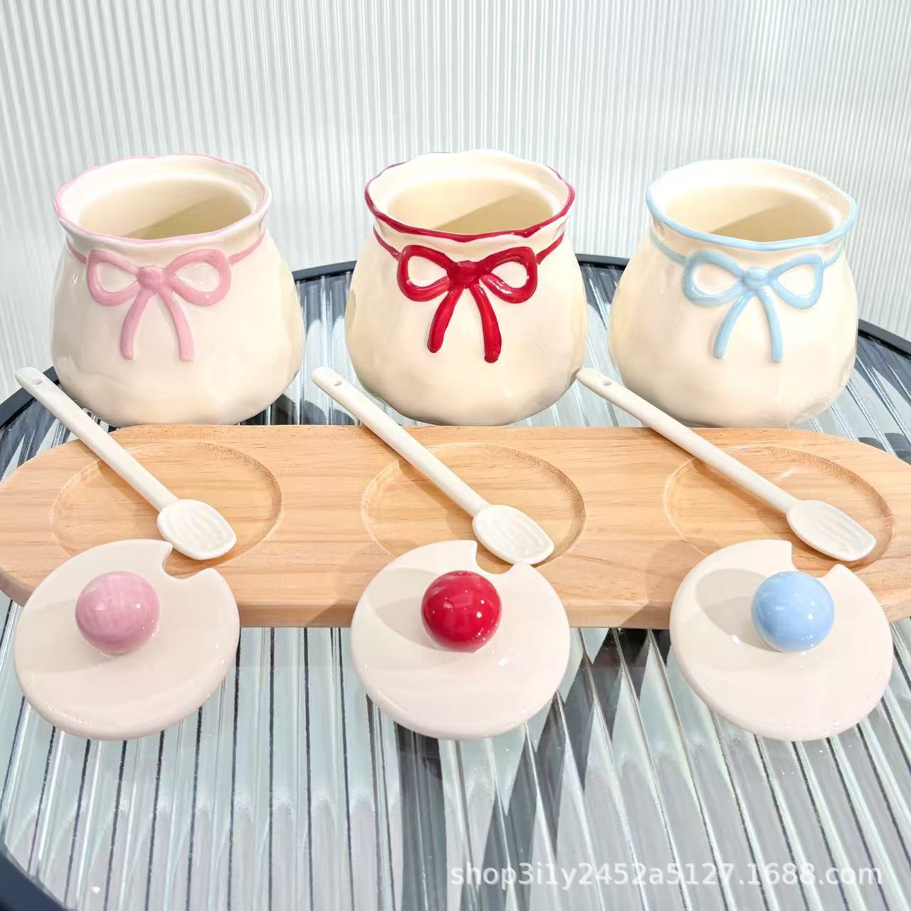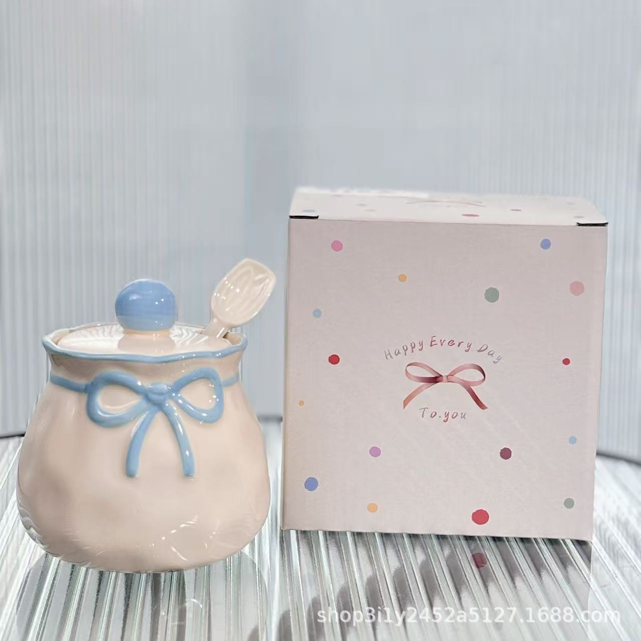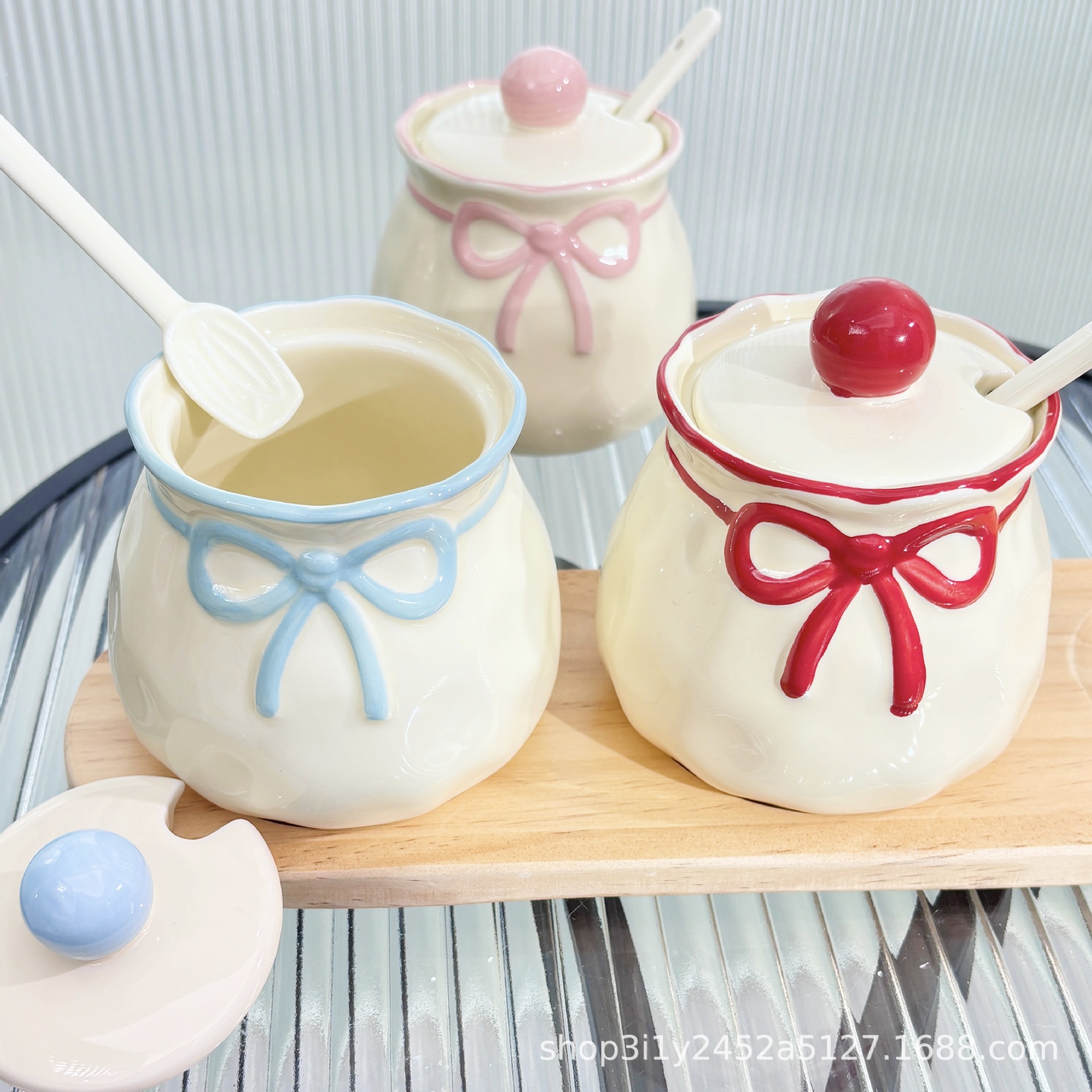规格 红色蝴蝶结调料罐【带勺子】,粉色蝴蝶结调料罐【带勺子】,蓝色蝴蝶结调料罐【带勺子】,调料罐组合套装【带托盘】(可备注颜色)