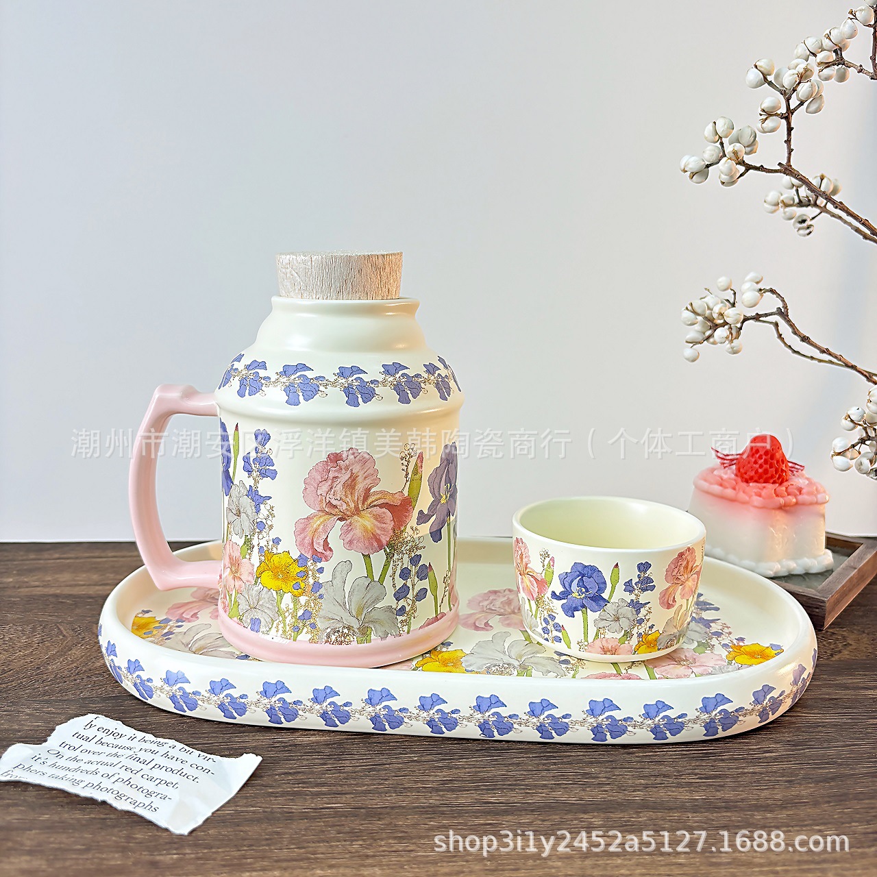 轻奢复古油画繁花陶瓷水壶杯精致冷水壶带杯生日礼物送人伴手礼