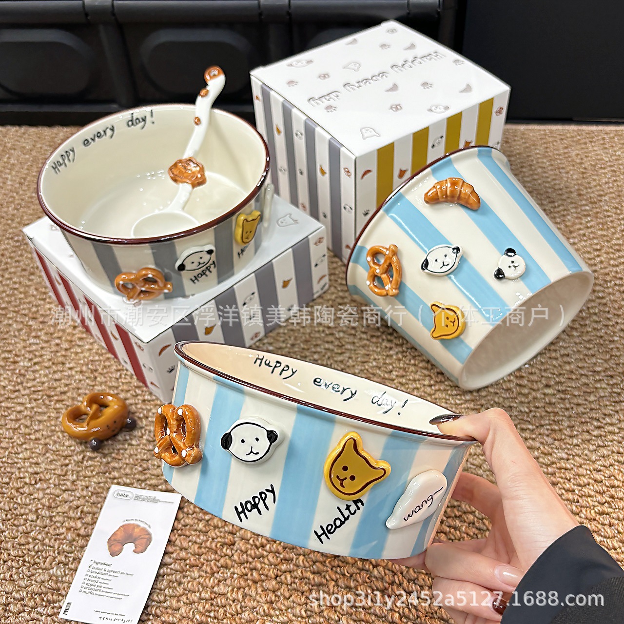 かわいいパン陶器食器セット クリーム風 高価値釉下色 家庭用食器 皿 スプーンセット