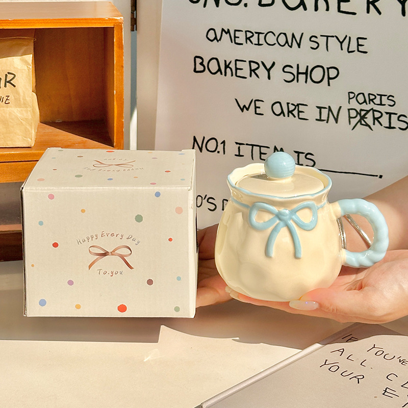 高颜值生日礼物可爱蝴蝶结马克杯设计感陶瓷水杯闺蜜实用伴手礼盒