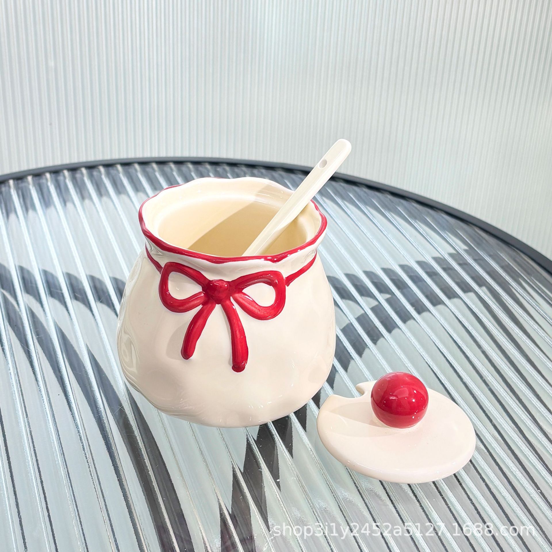 高颜值马克杯带盖蝴蝶结杯子情侣款水杯陶瓷大容量家用咖啡早餐杯