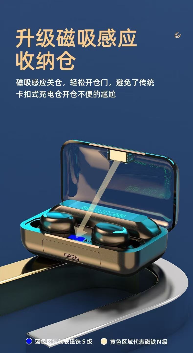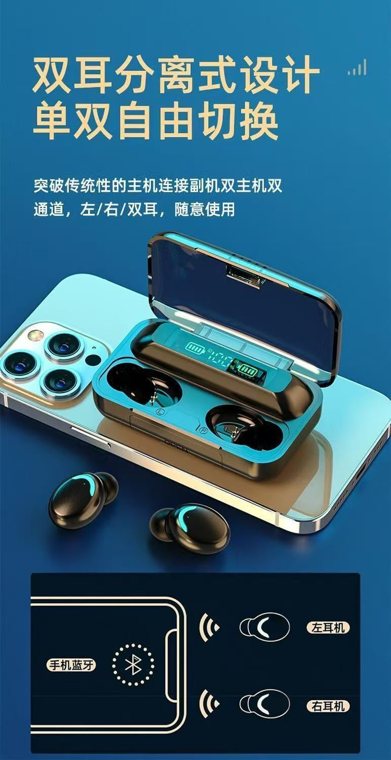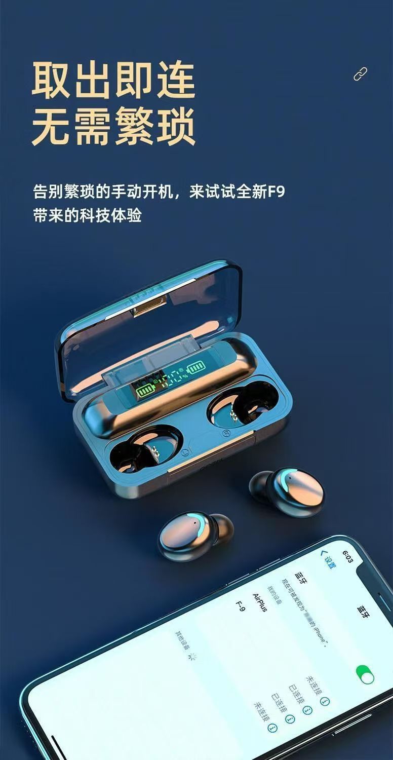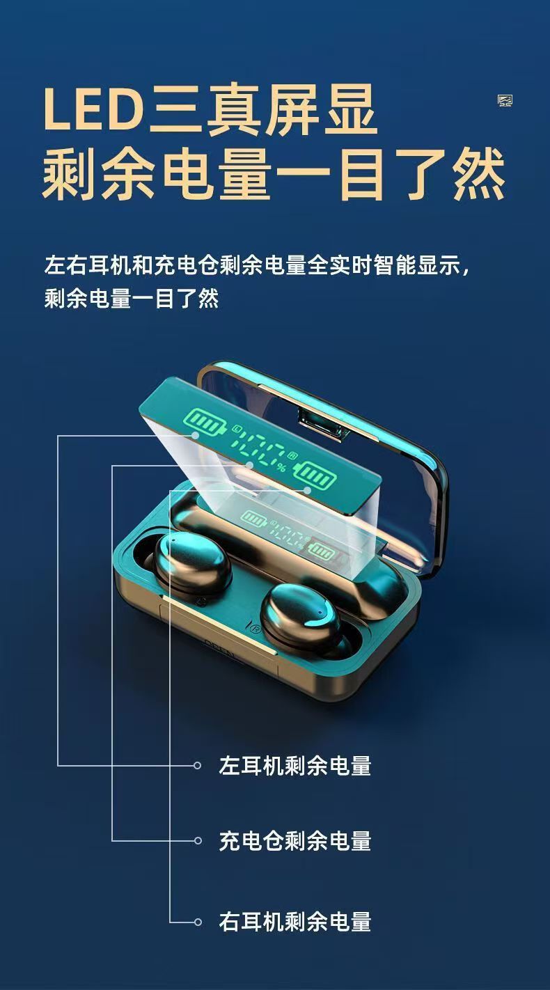 跨境爆款蓝牙无线耳机F9-5C高清智能数显源头工厂一件代发入耳式