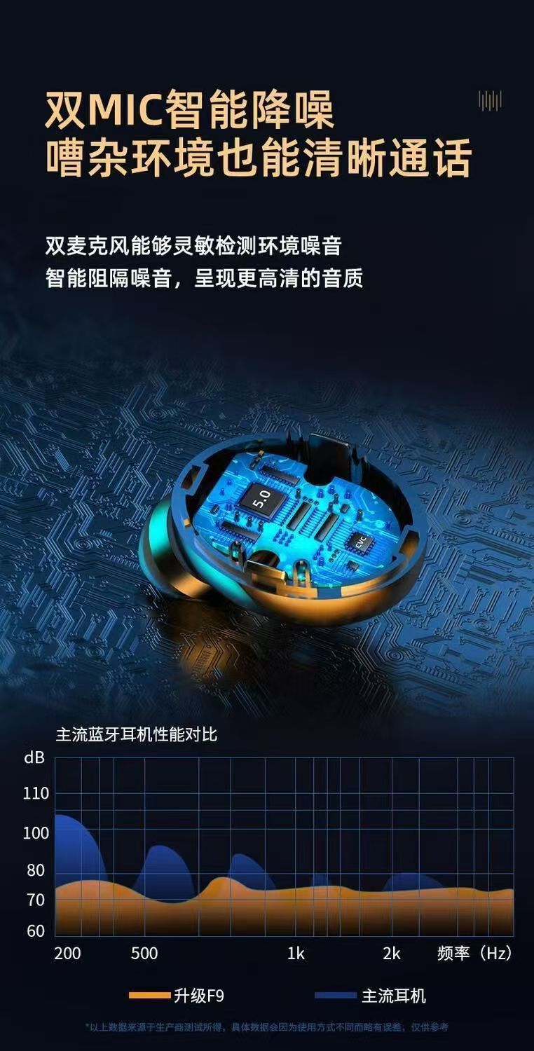 跨境新爆款无线运动蓝牙耳机降噪高音质智能高清数显耳机F9-5C