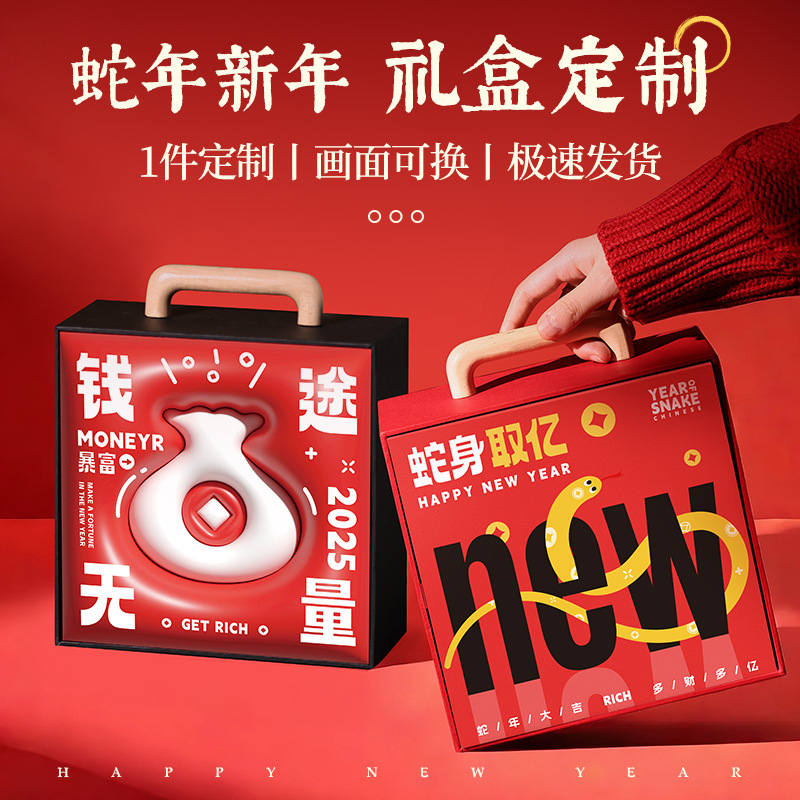 蛇年新年礼箱空箱小ロットカスタム木手提げ客先の年越し年礼箱ハイエンド礼箱