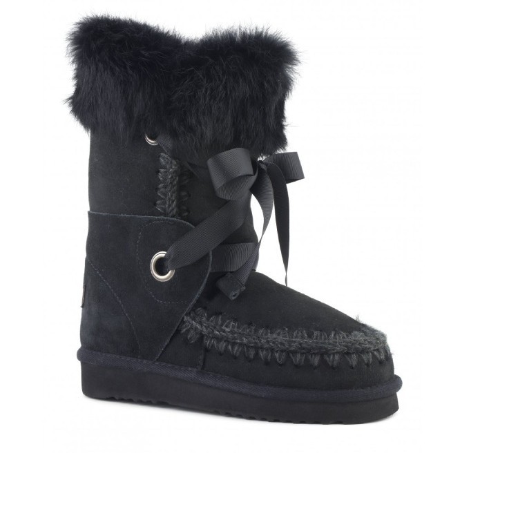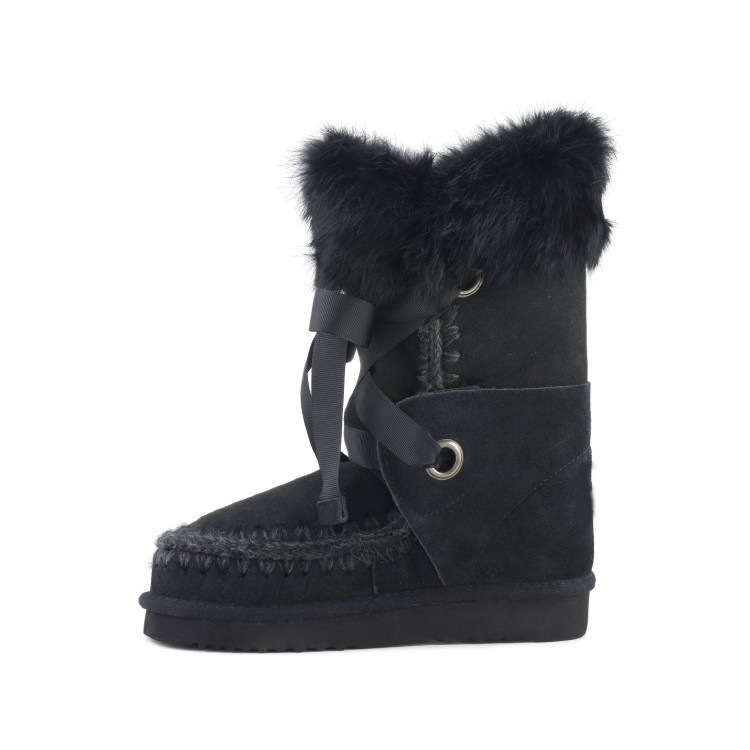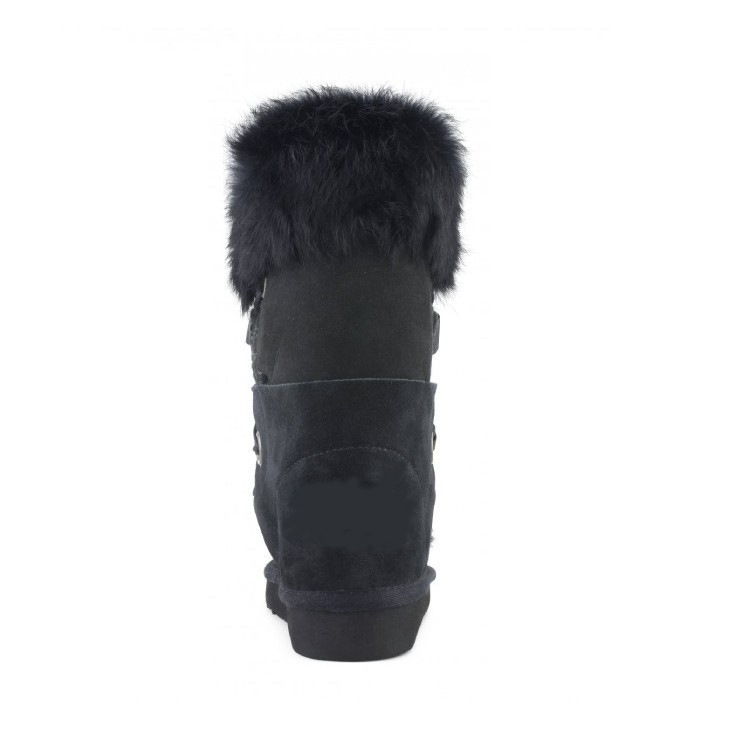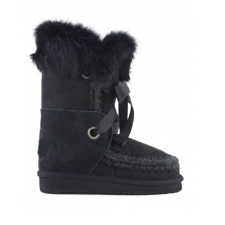 缎带兔毛装饰羊皮毛一体女士舒适休闲中筒靴 雪地靴冬靴