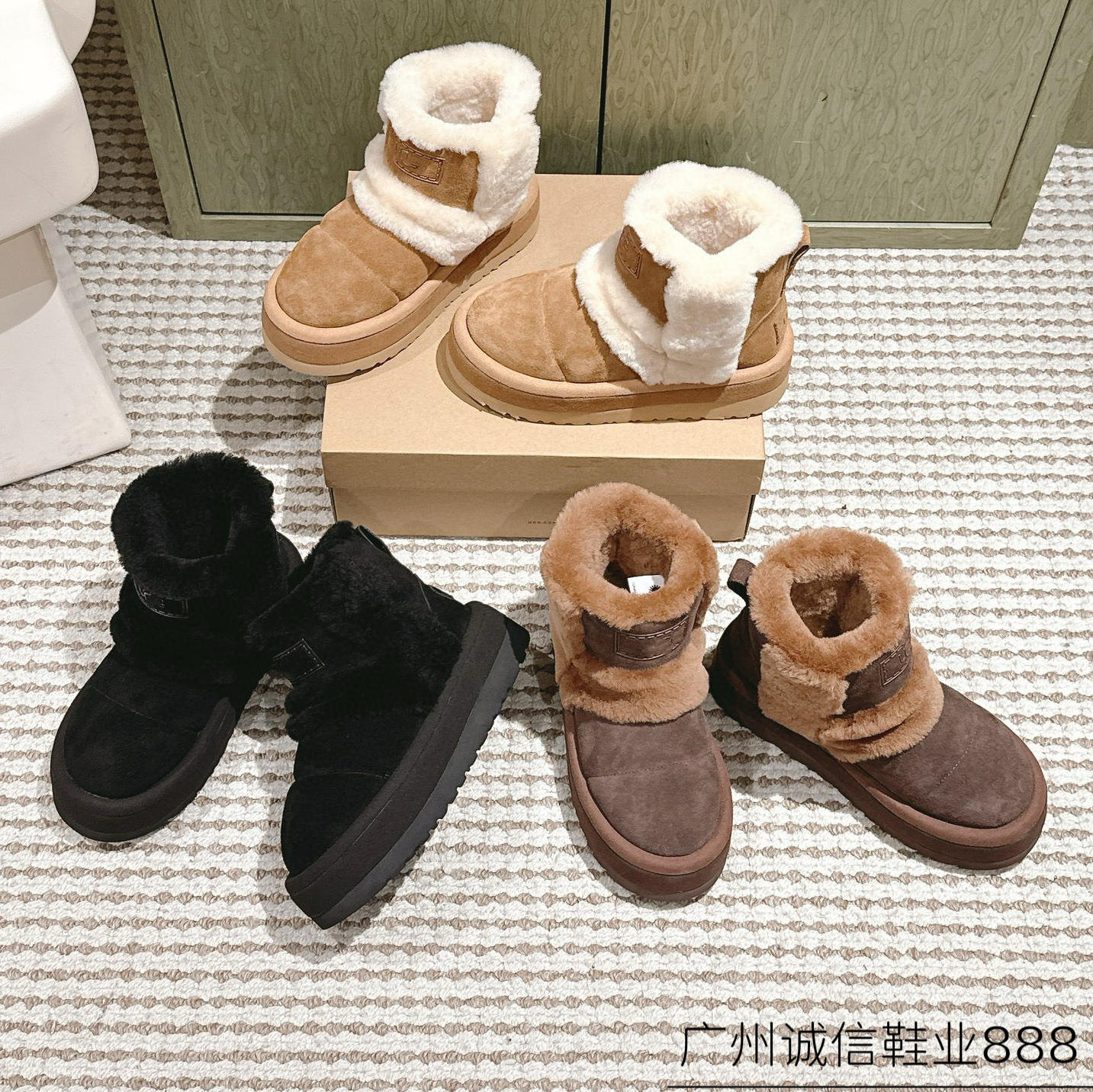 高版小众2025冬季羊皮毛一体加厚保暖厚底绑带休闲面包短靴雪地靴