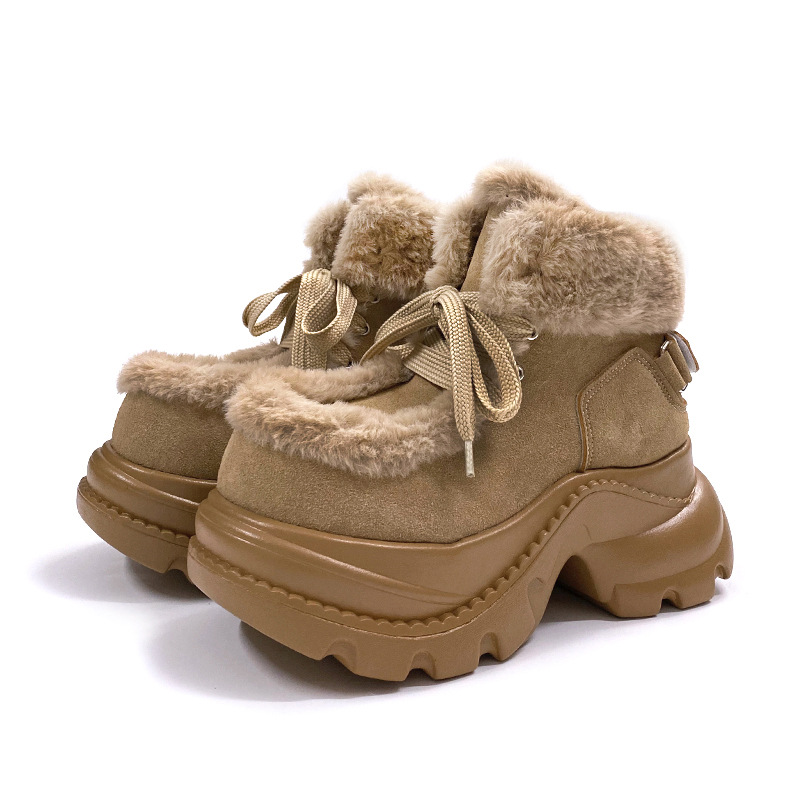 【sheii苏茵茵】北岛初雪保暖户外厚底绑带毛毛短靴女雪地靴冬