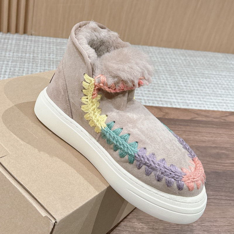 外贸原单民族风编织彩虹羊毛毛线休闲短靴加绒保暖皮毛一体雪地靴