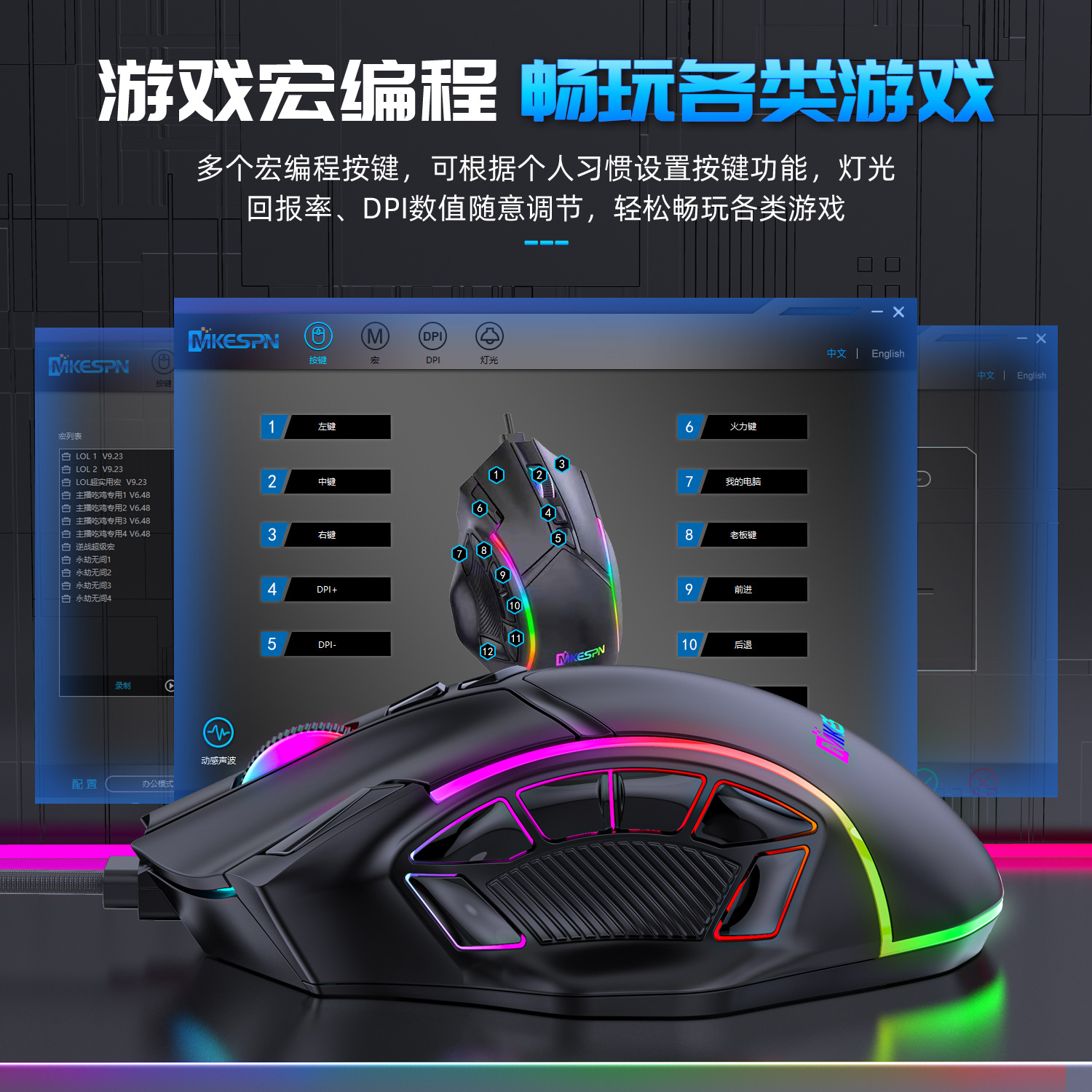 12800DPI全速12键宏定义有线RGB游戏鼠标一件起批电脑配件