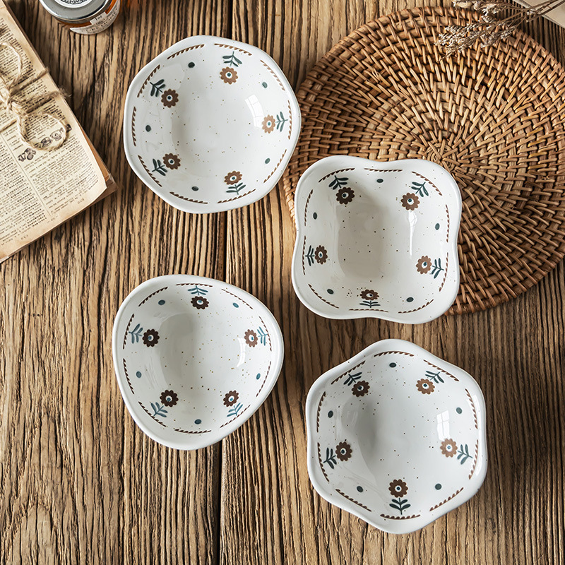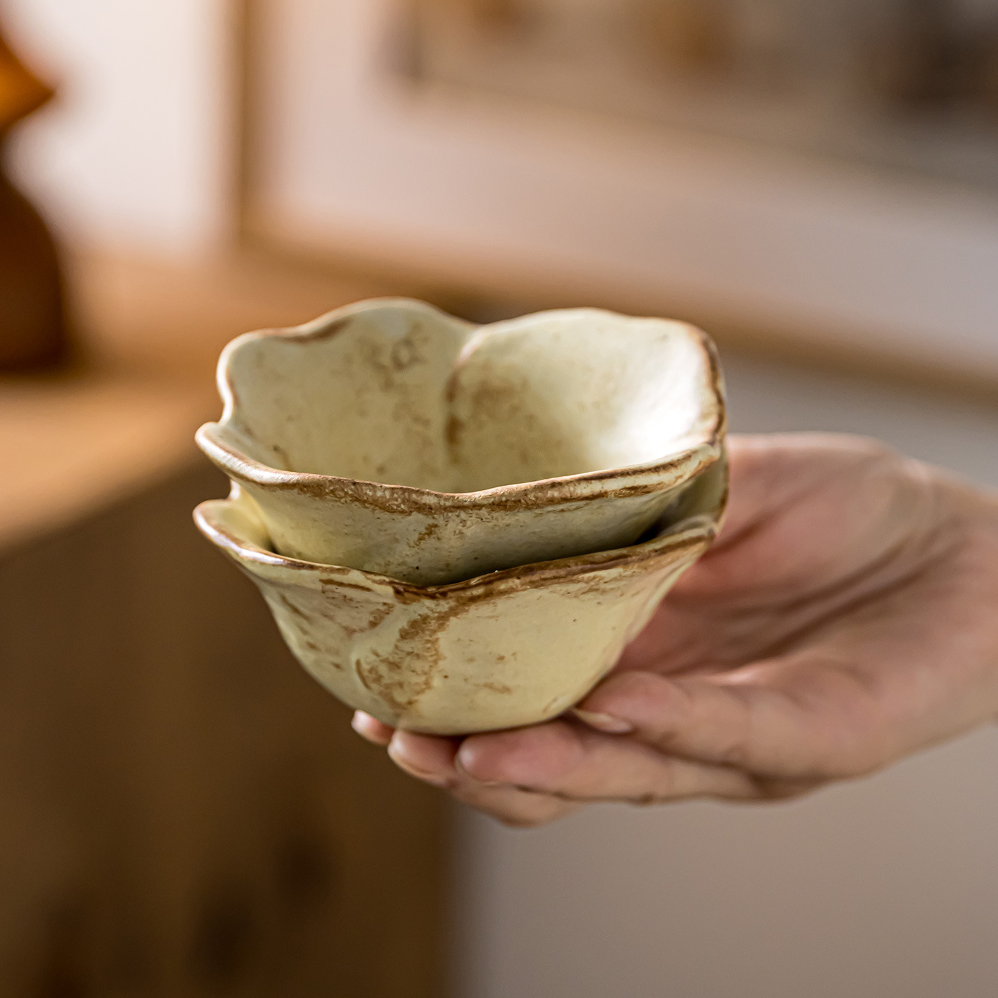 手捏感粗陶味碟家用复古风陶瓷调味碟蘸料碟花朵形甜品碟餐具批发