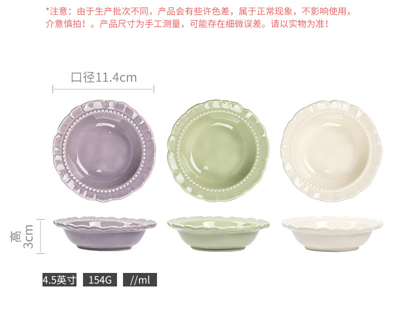 颜色 松萝-味碟白4.5英寸,松萝-味碟绿4.5英寸,松萝-味碟紫4.5英寸