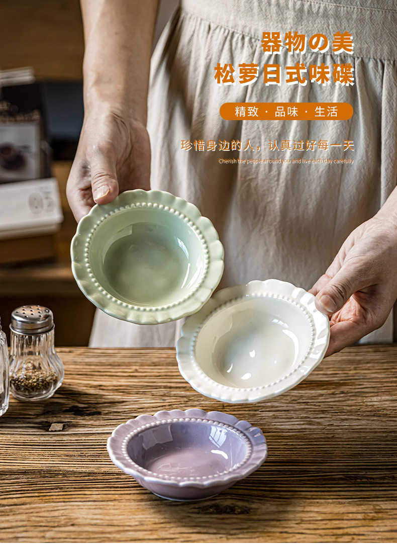 高颜值花边陶瓷味碟ins碟子批发甜品碟家用蘸料碟调味碟餐具餐碟
