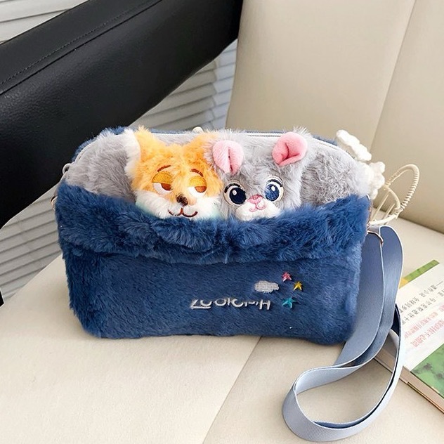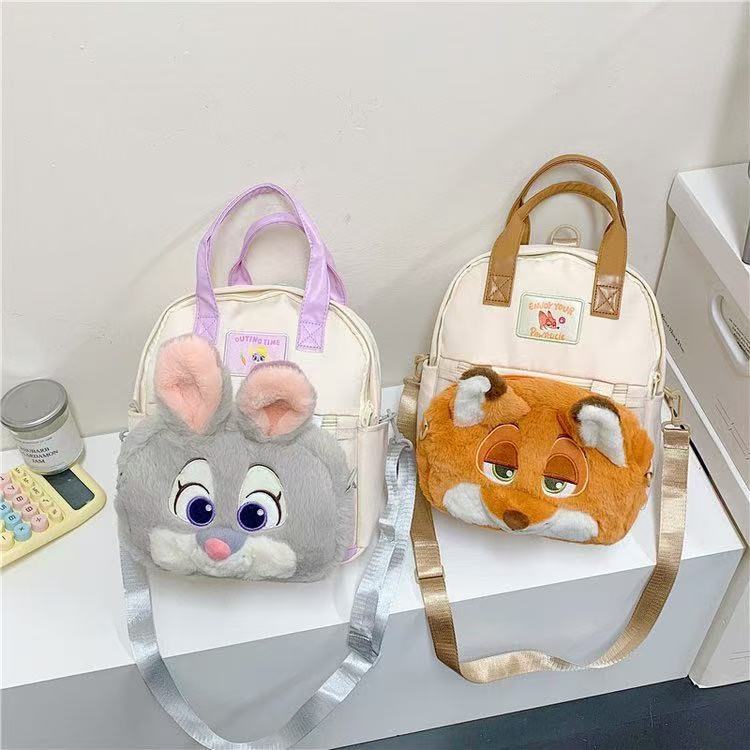 卡通ins疯狂动物城单肩斜挎包包女可爱毛绒朱迪狐狸尼克百搭背包