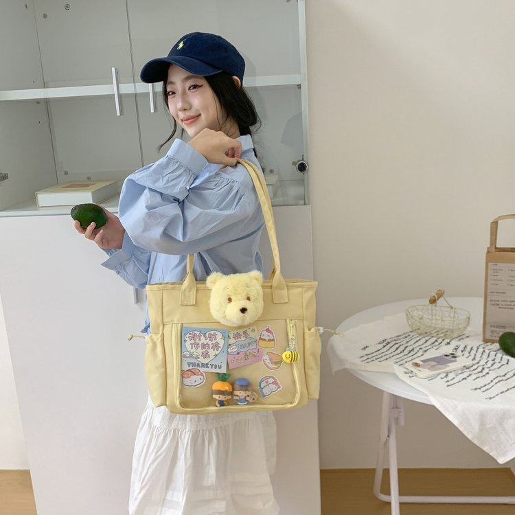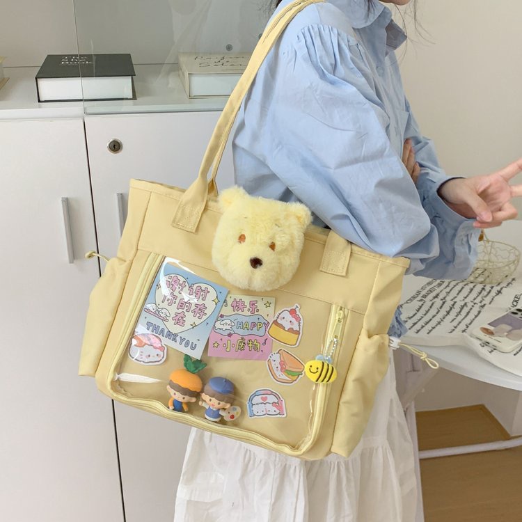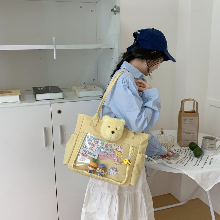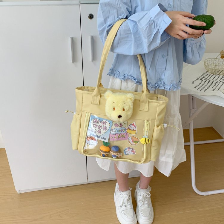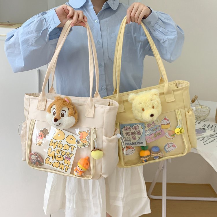 日本製のぬいぐるみゴールデンレトリバーの犬型ショルダーバッグ、漫画風JK女子二次元透明軽食バッグ
