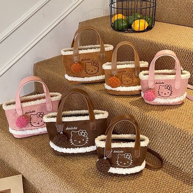 韩版ins卡通毛绒凯蒂猫单肩斜挎包女小众设计可爱洋气百搭手提包