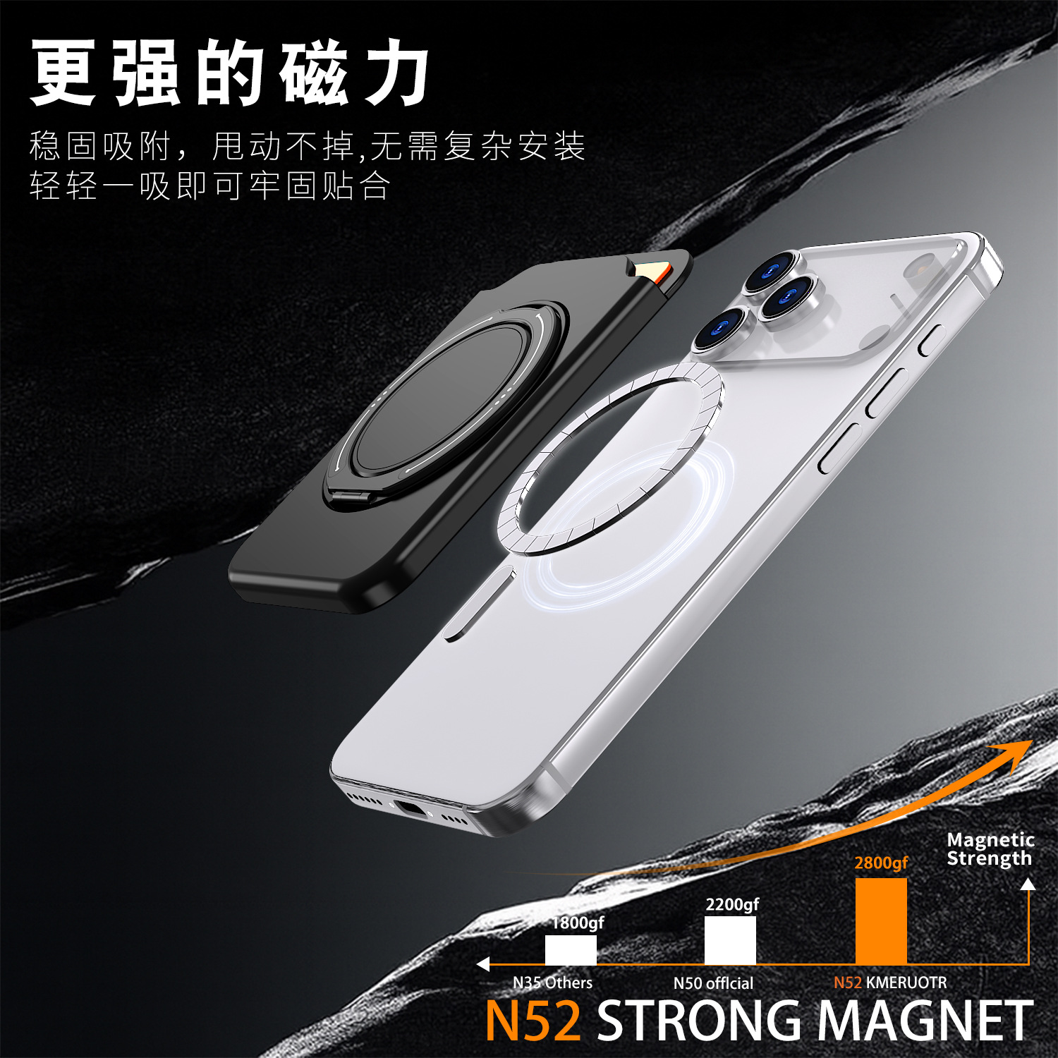 适用苹果/三星多功能手机配件Magsafe磁吸卡包360旋转支透明肤感