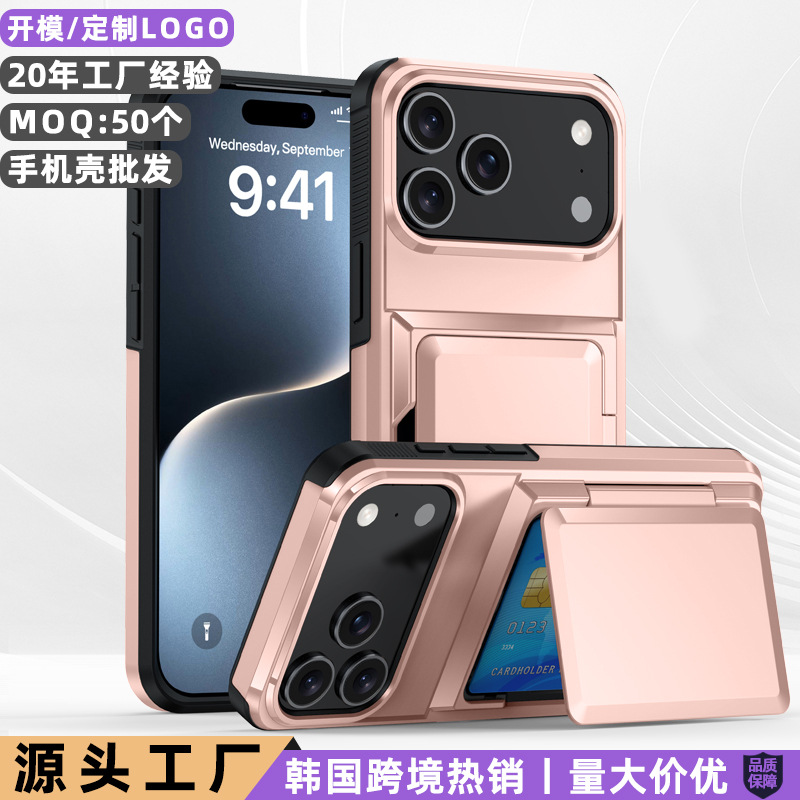 日本と韓国に適した iPhone17Pro 携帯電話ケース フリップカード ツーインワン ストレージ カード Apple 17ProMax
