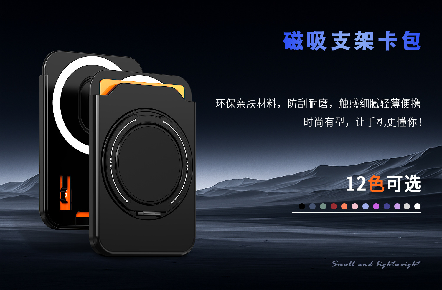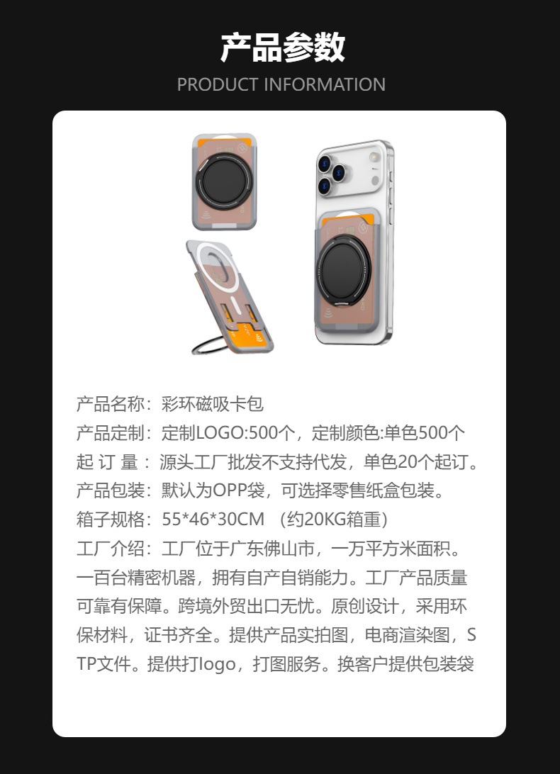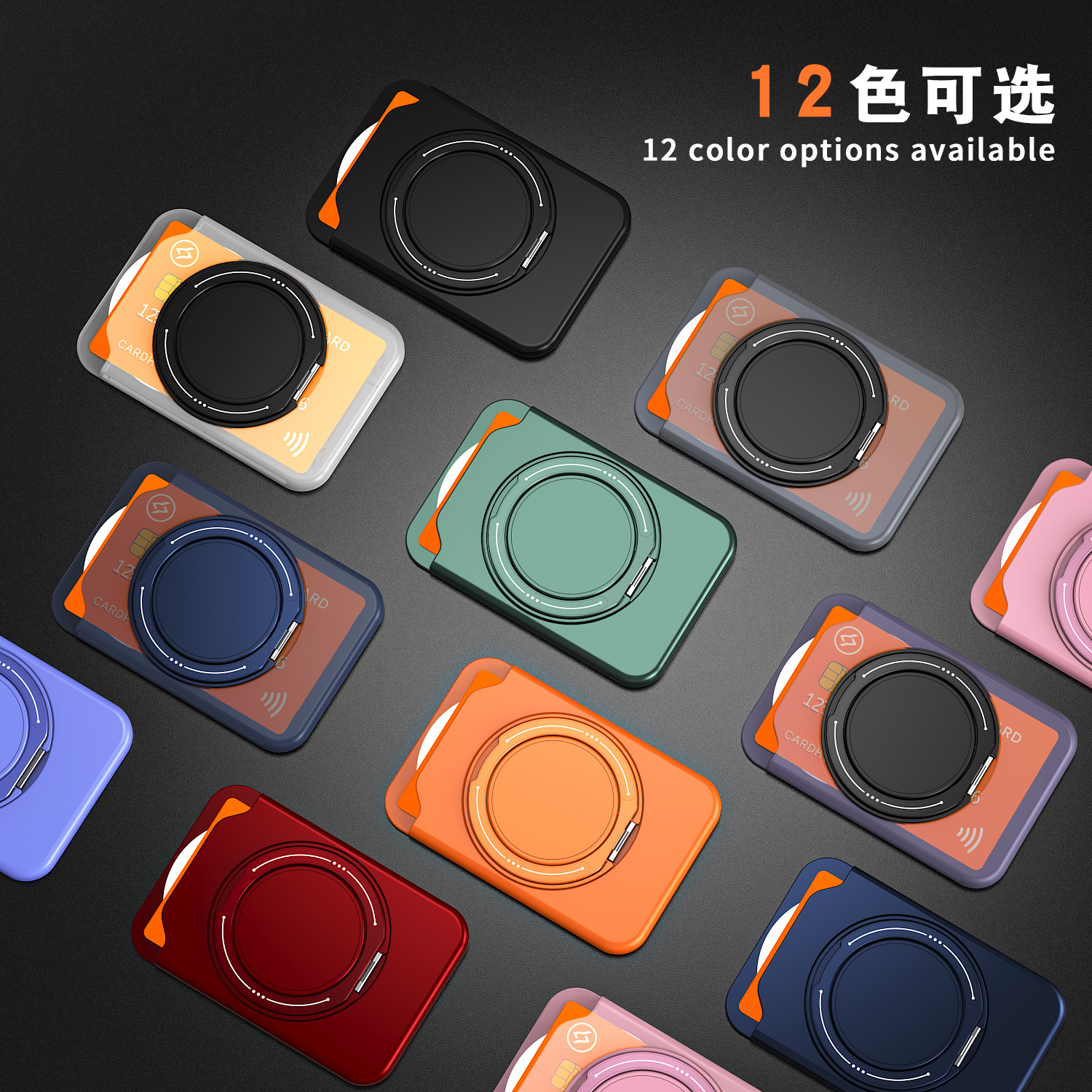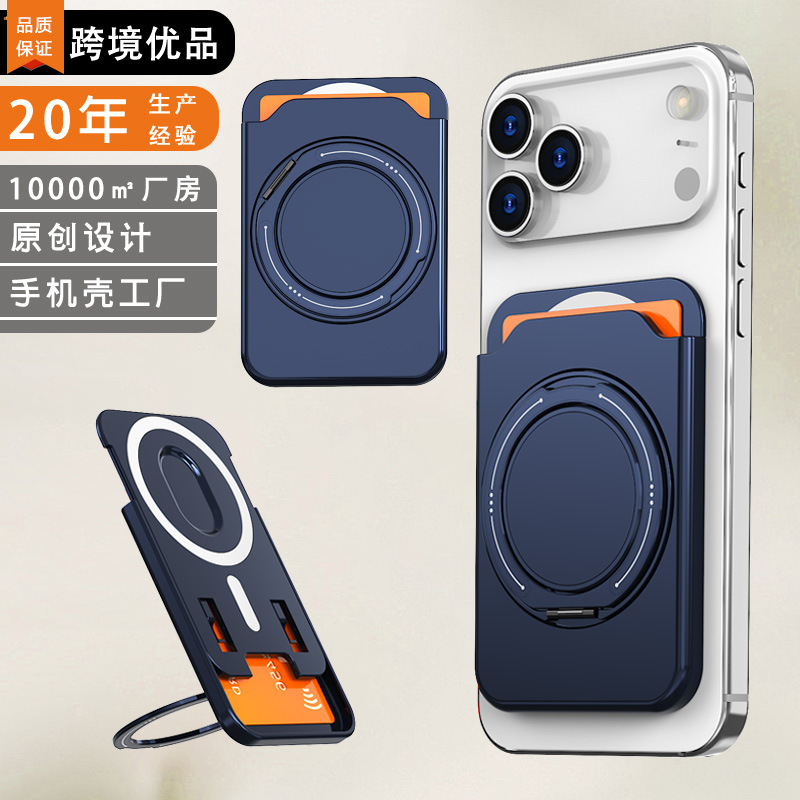 跨境款彩环支架磁吸卡包磨砂肤感色360旋转支架多功能手机插卡包