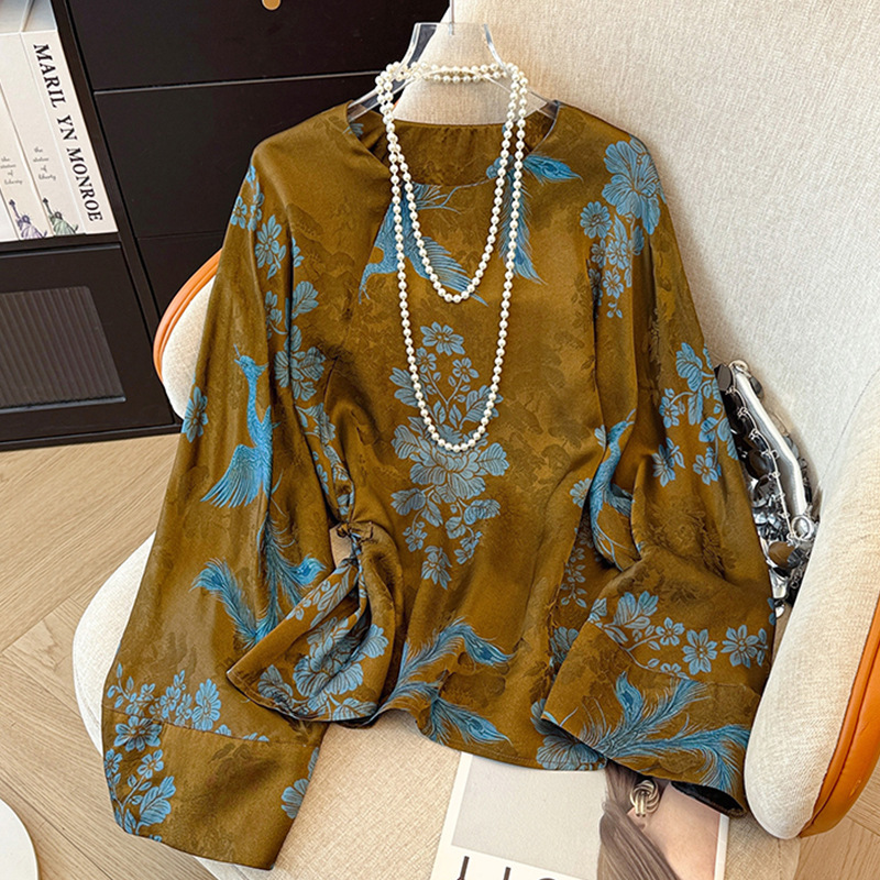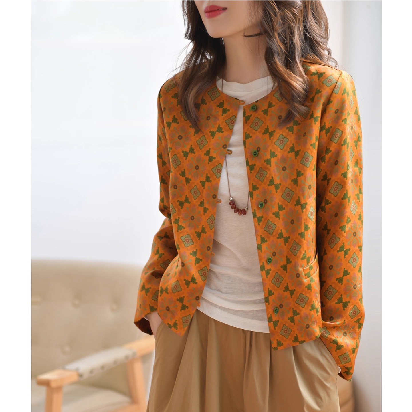 ブランド割引アウトレット ジャカード織り桑蚕糸 新中式風 国風 エクリュ色 ヘビーウェイトシルクシャツ レディース 春