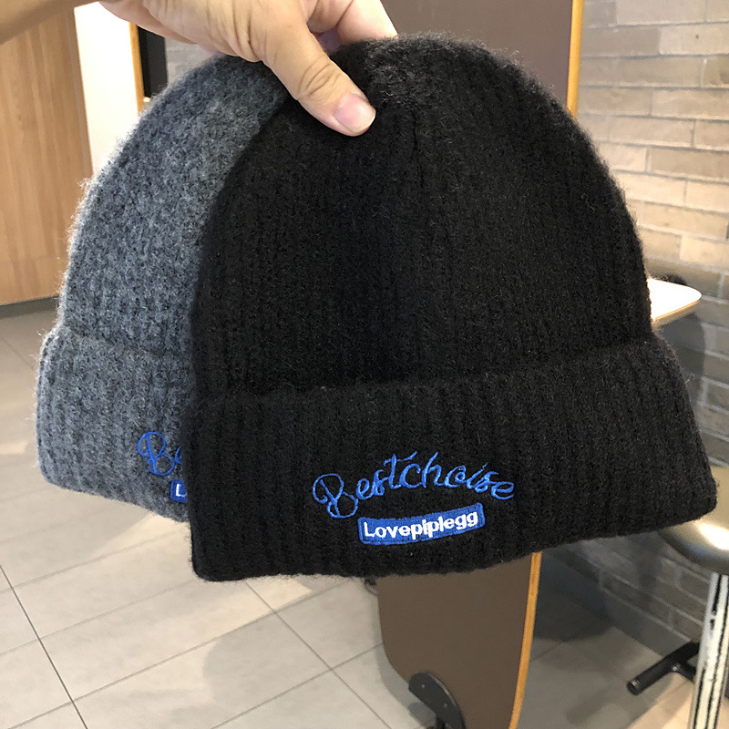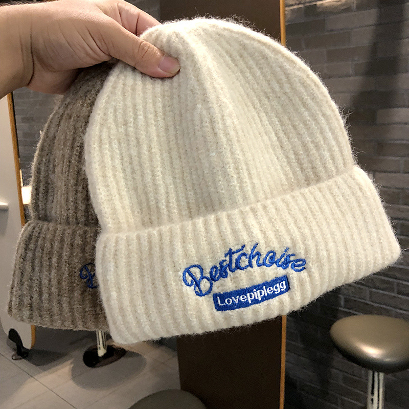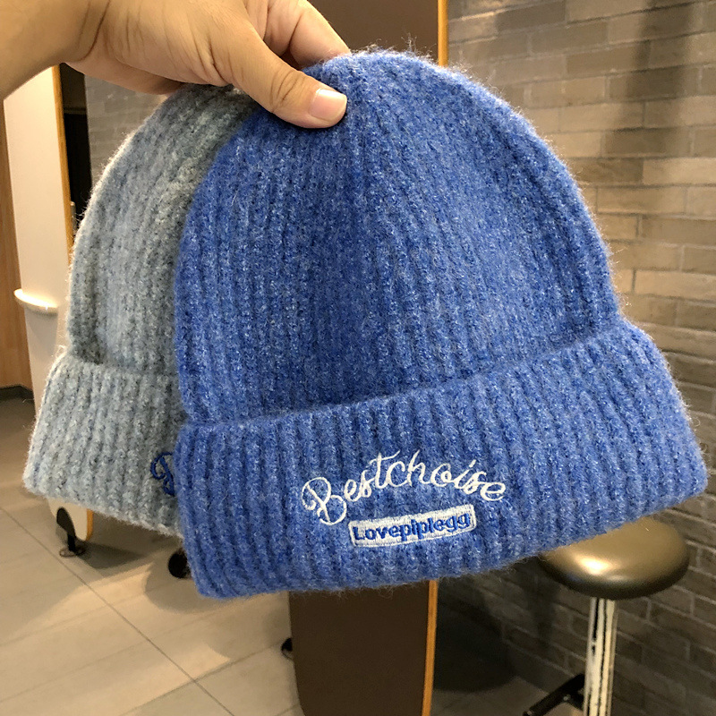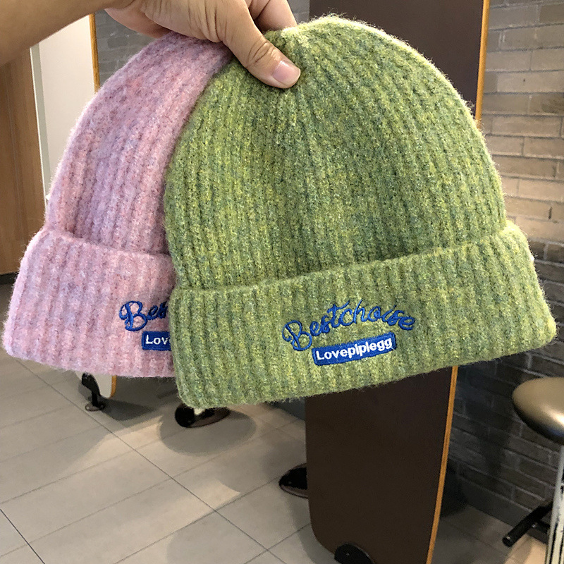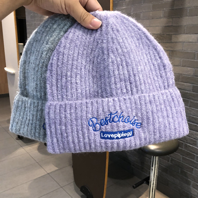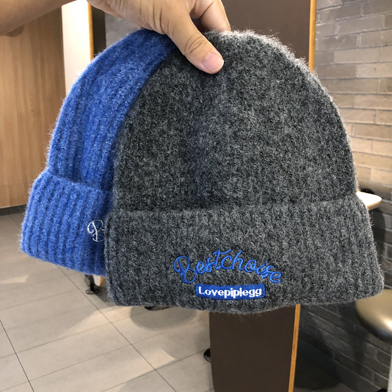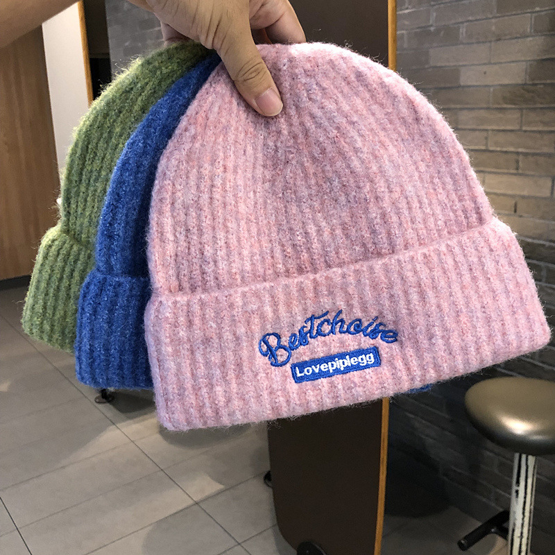 韓国のファッションブランドのニット帽秋冬毛糸帽子女性ins風学生カップルカラーウール冷帽子包頭帽子男