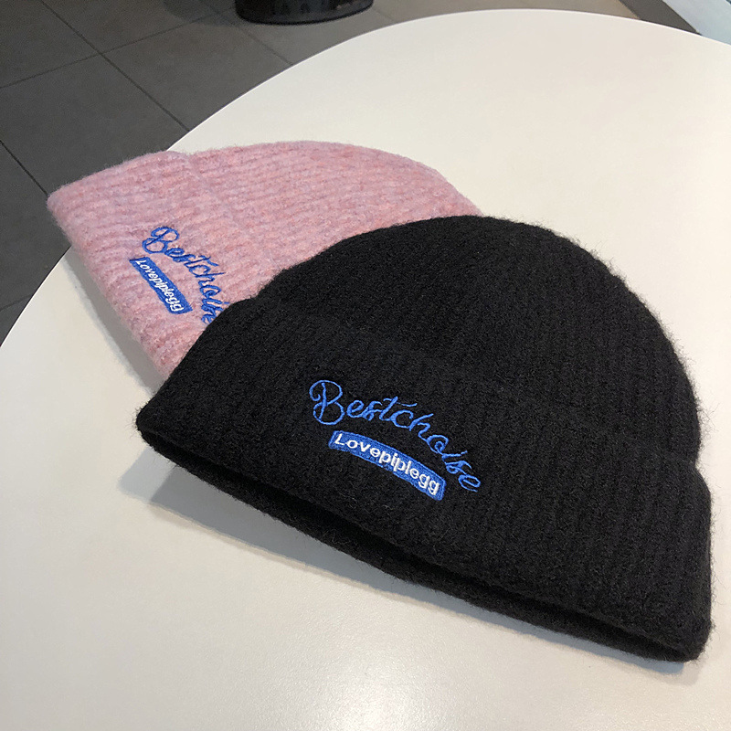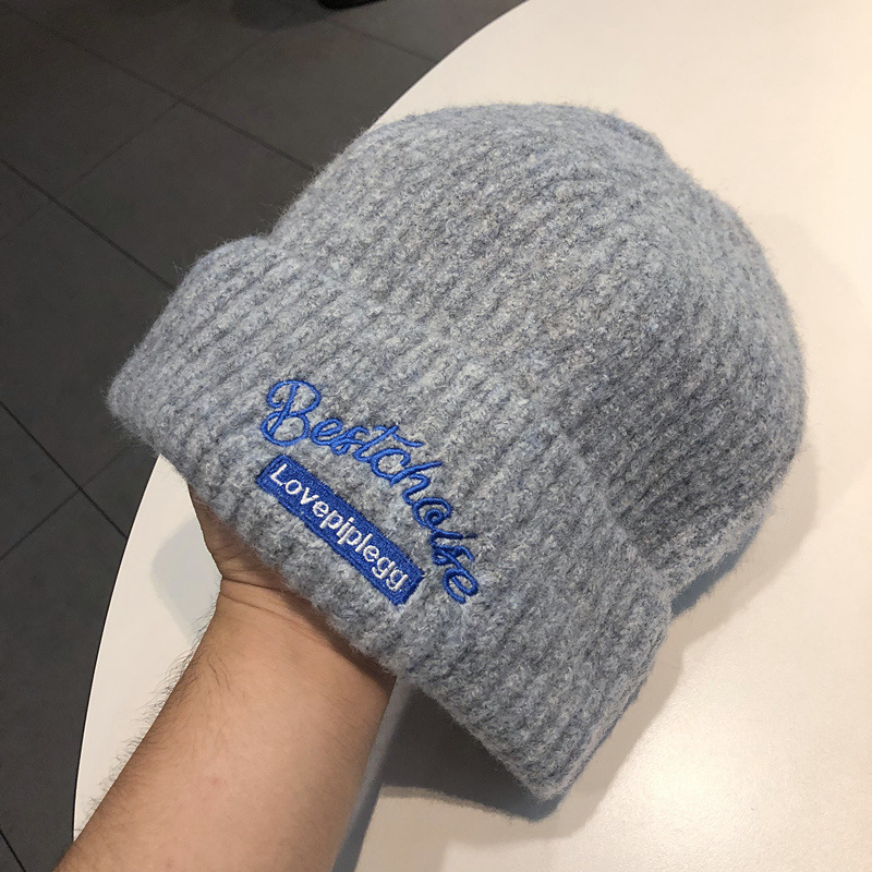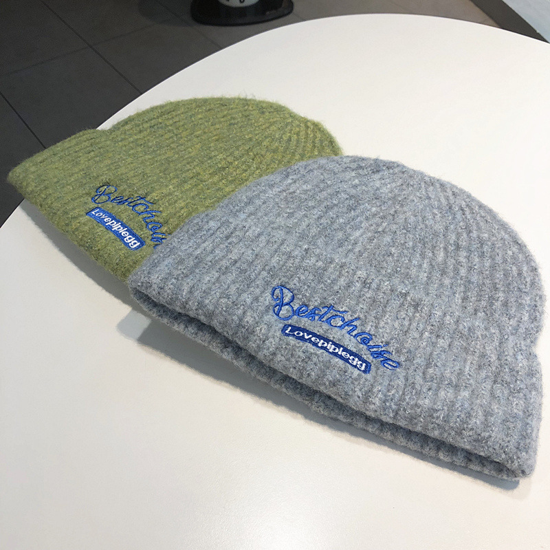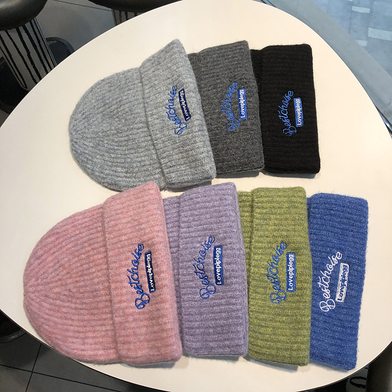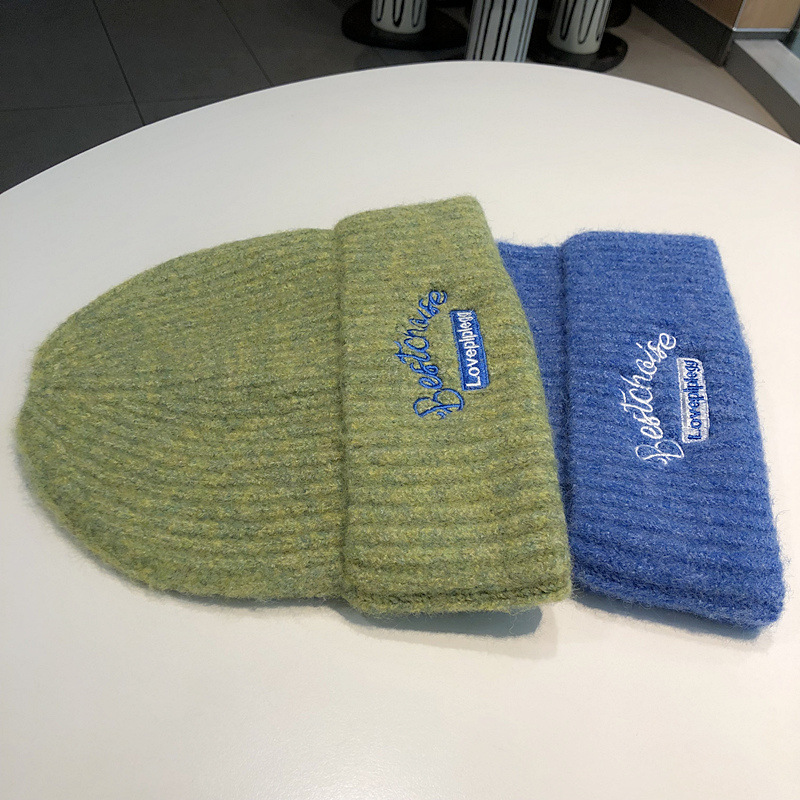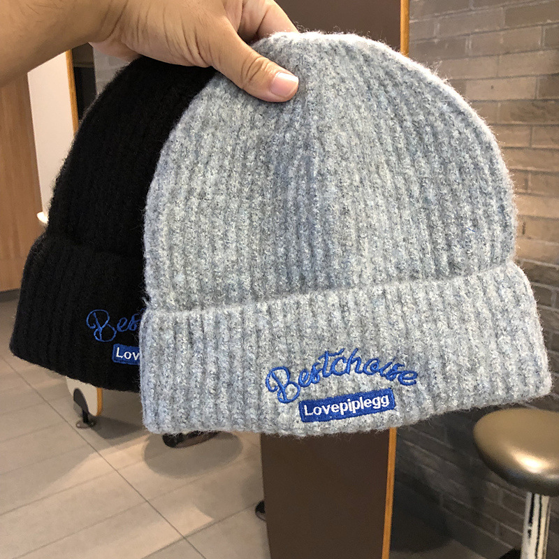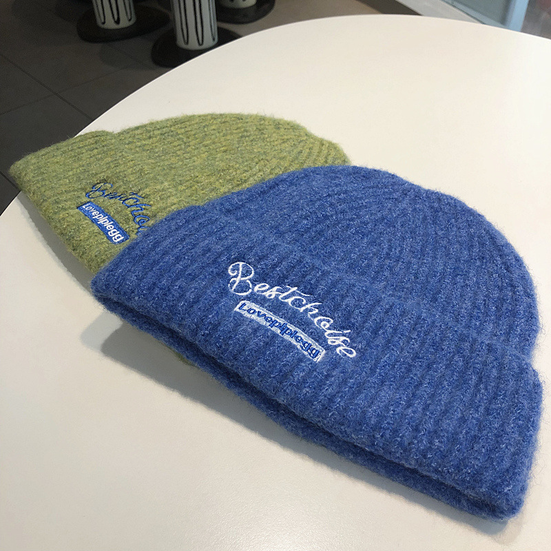 韓国のファッションブランドのニット帽秋冬毛糸帽子女性ins風学生カップルカラーウール冷帽子包頭帽子男