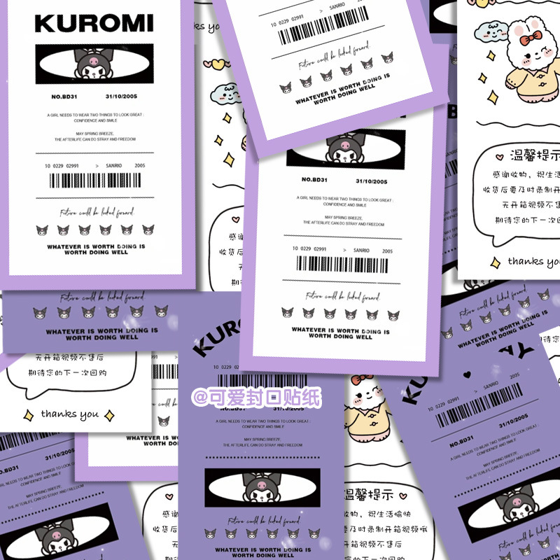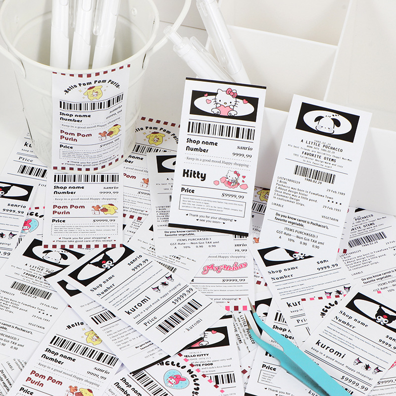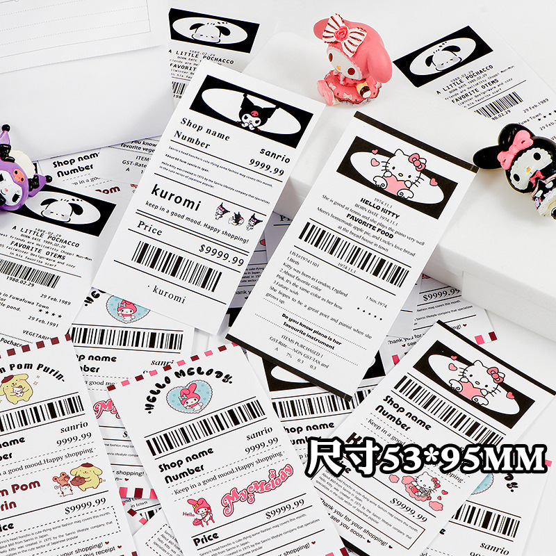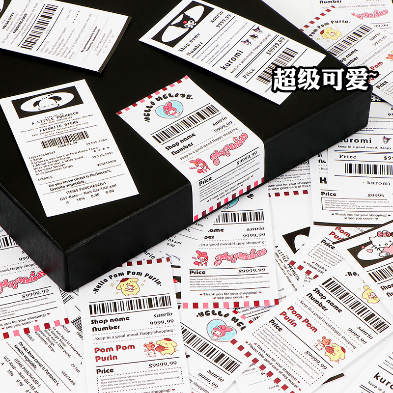 小红书ins美式小票贴纸三丽鸥封口贴购物清单贴纸DIY手账素材可爱