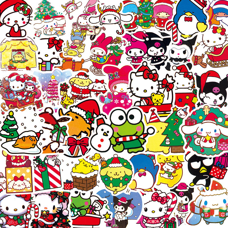50张三丽鸥圣诞节贴纸可爱卡通库洛米KT美乐蒂手账笔记本装饰贴纸