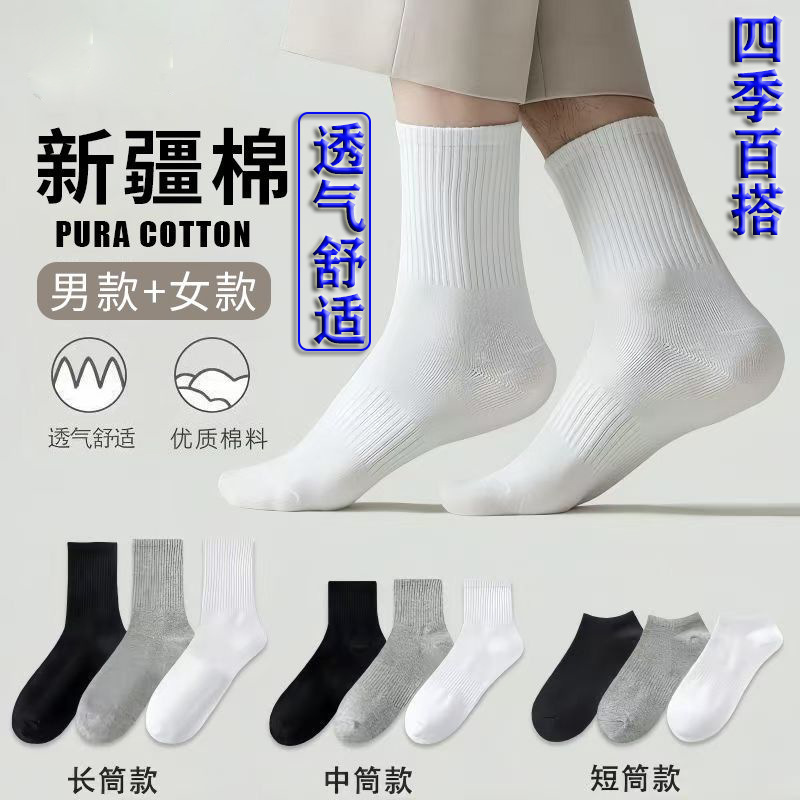 新疆綿のメンズ・レディースソックス、ミドル丈・ショート丈、無地、スポーツソックス、トレンディでカジュアル、万能、吸汗性と通気性に優れたショートソックス