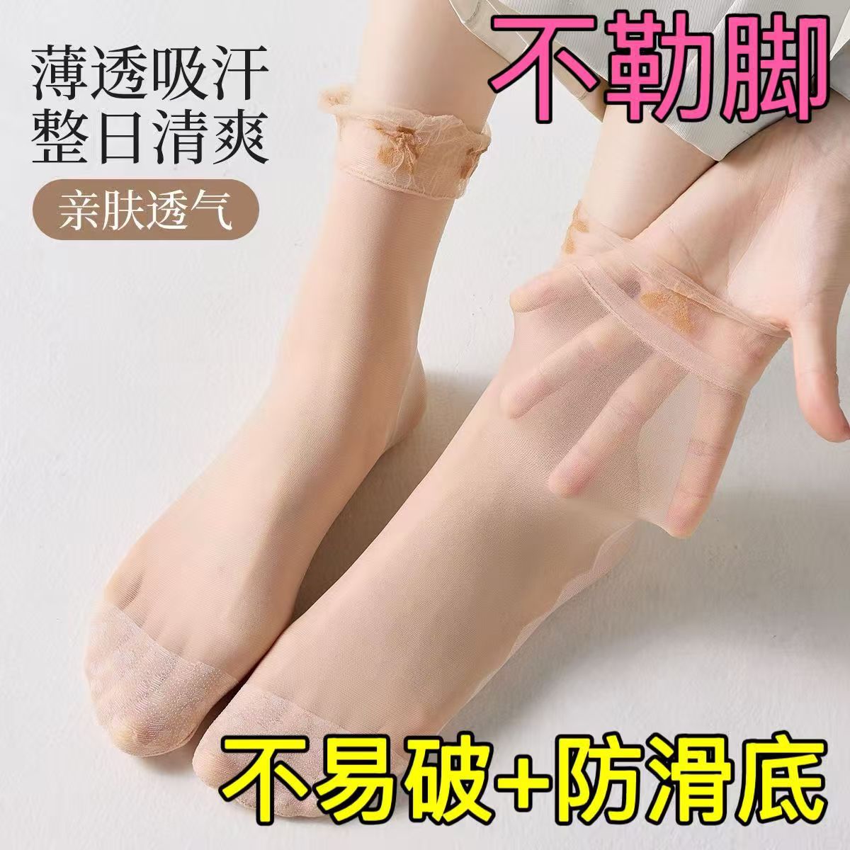 夏季超薄隐形细边松口肉色丝袜短筒超薄脚尖透明水晶丝短丝袜百搭