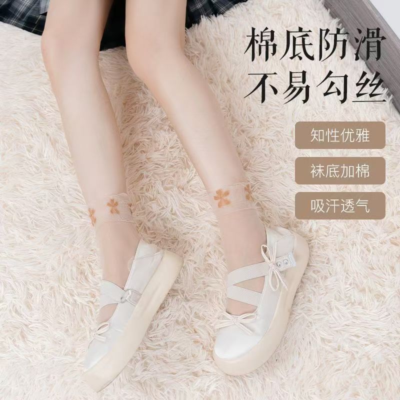 靴下女性のショートストッキング春と夏の超薄型鋼線マスクソックス通気性目に見えない引っかかり防止無地ミッドカーフストッキング