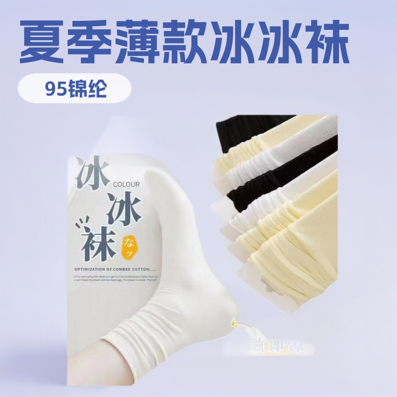 白い靴下、夏用の薄い氷の靴下、ボーンレスソックス、ミッドチューブパイルソックス、産後靴下、毛玉のない靴下