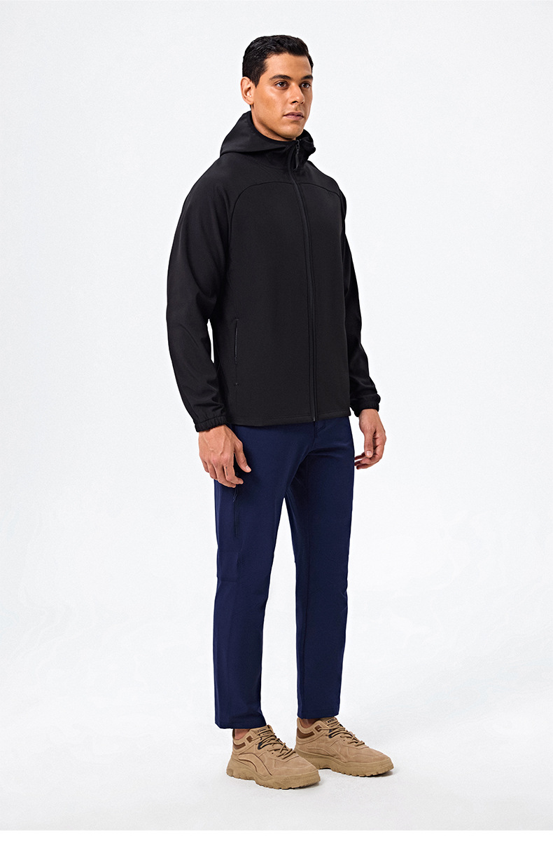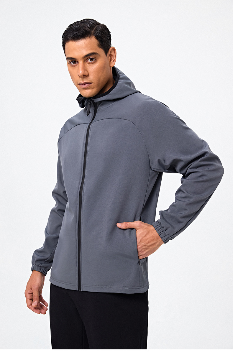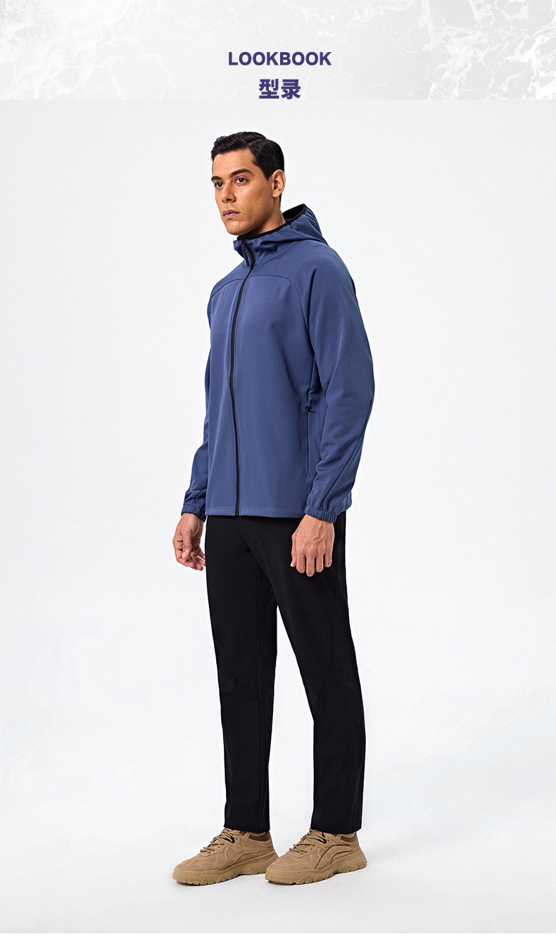 迪家アウトドアスポーツソフトシェルコートジッパーフード付きカジュアル長袖ジャケット風衣男速乾通気性ランニング